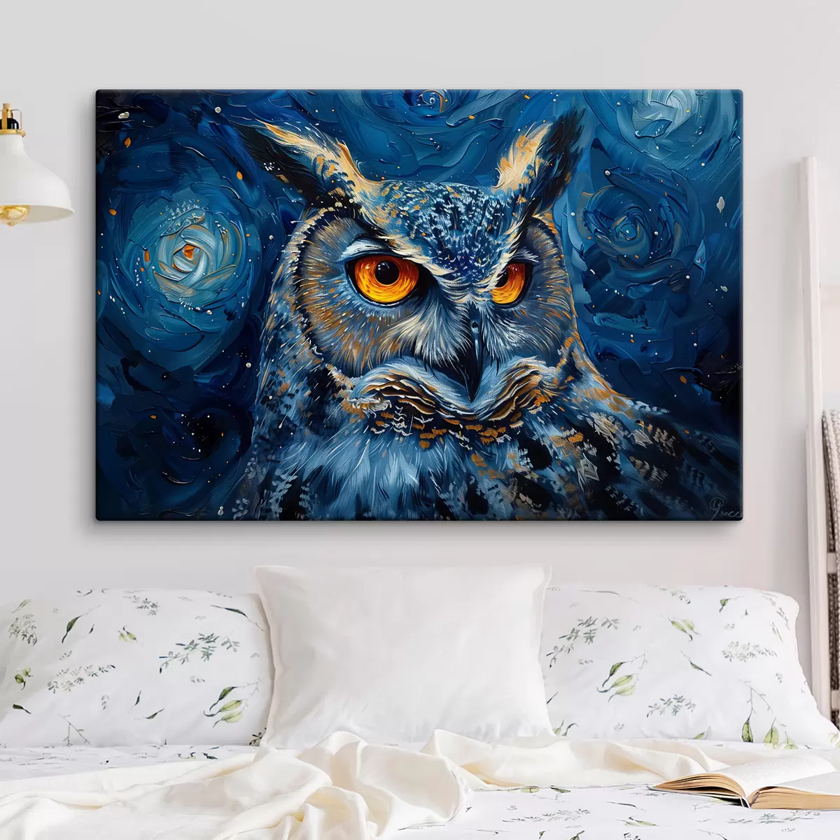 Paveikslas Pelėdos žvilgsnis naktį su Van Gogo stiliaus dangumi Nr s40982