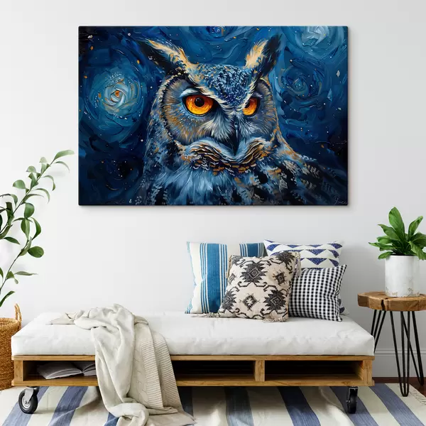 Paveikslas Pelėdos žvilgsnis naktį su Van Gogo stiliaus dangumi Nr s40982