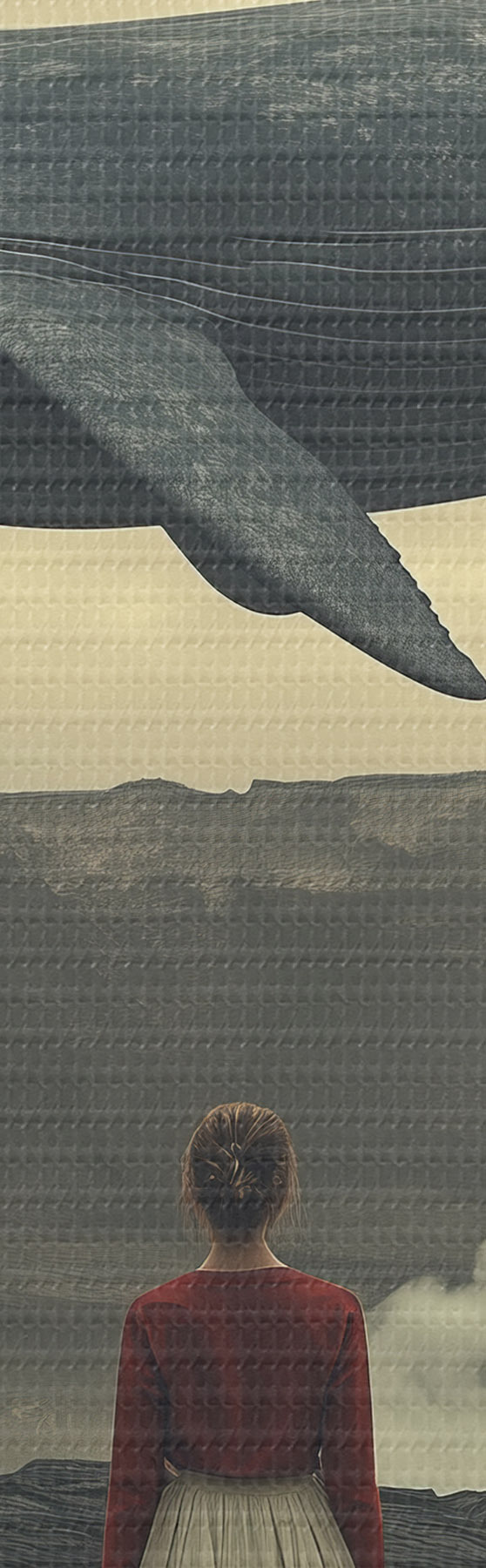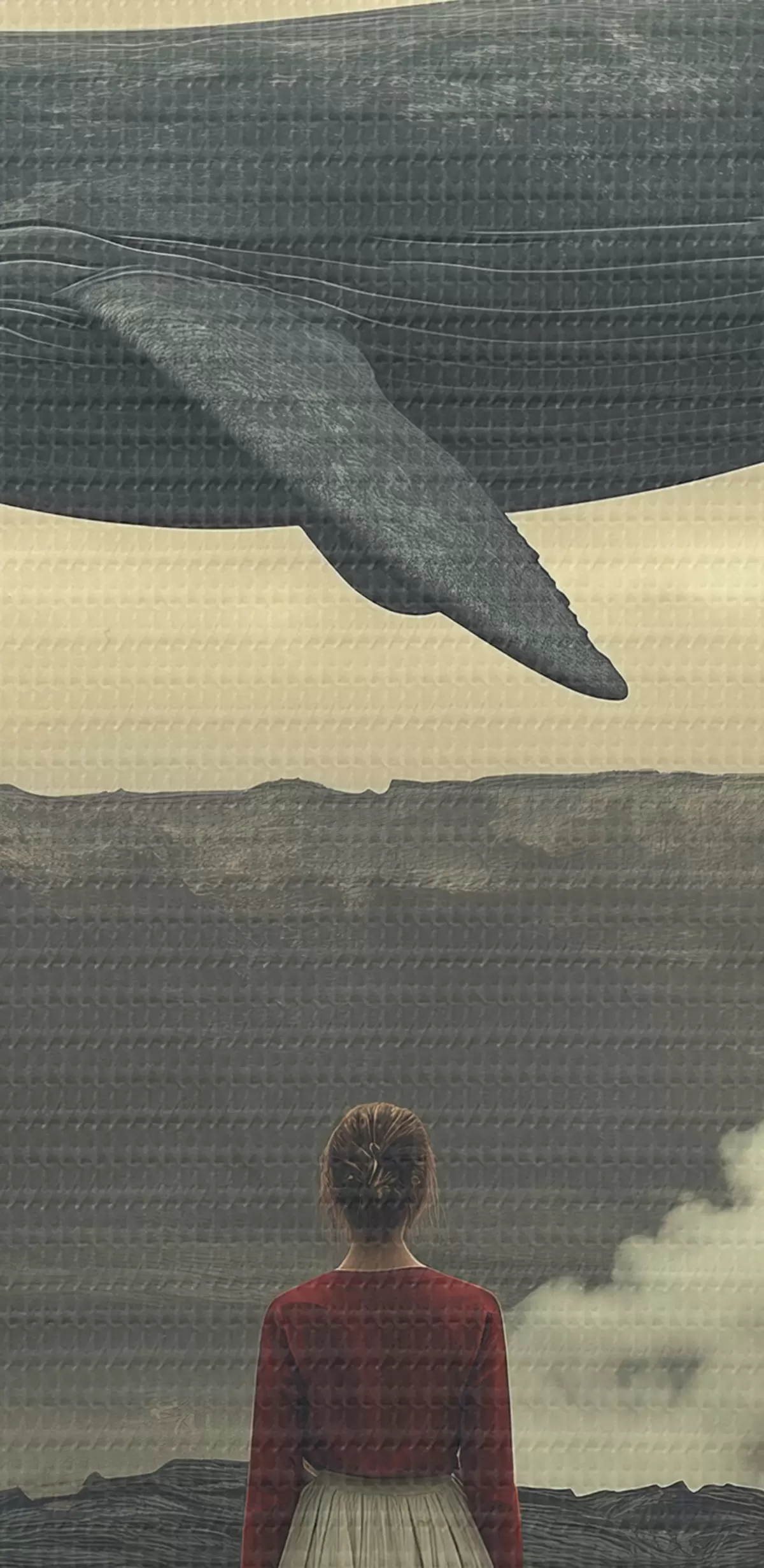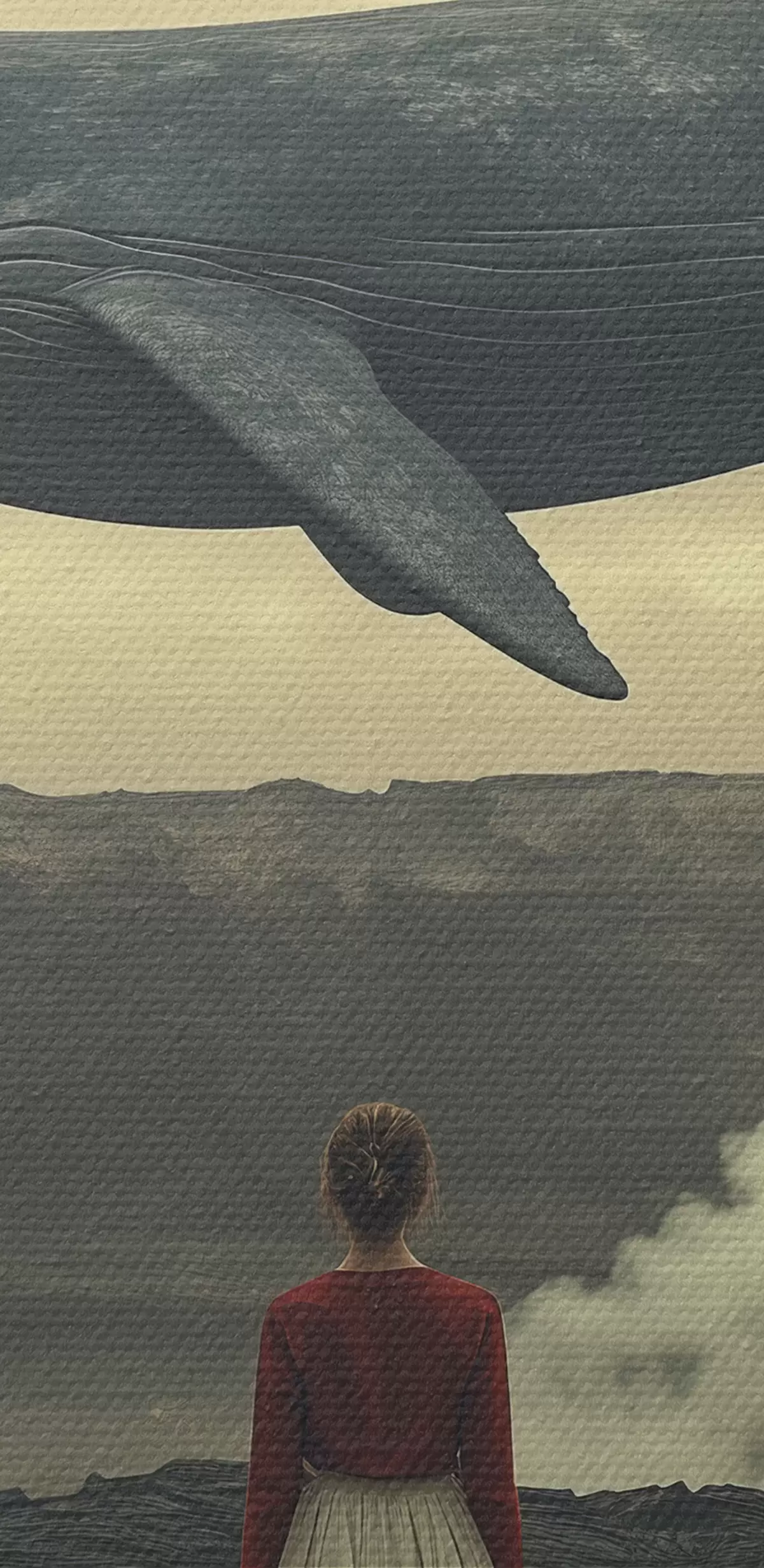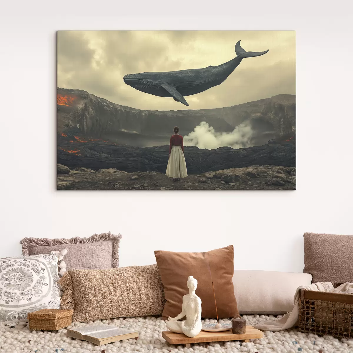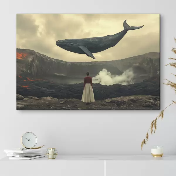 Paveikslas Mergina ant lavos su dideliu skraidančiu banginiu danguje Nr s40986