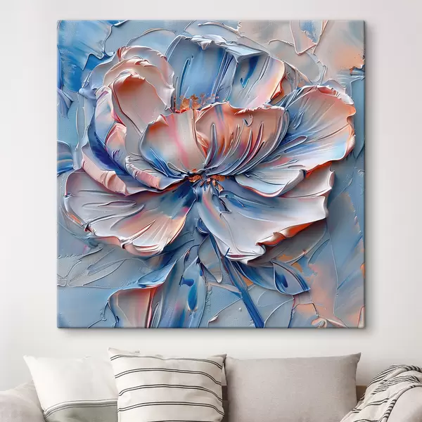 Paveikslas Didelė gėlė su drąsiais mėlynos ir persikinės spalvų potėpiais Nr s41004