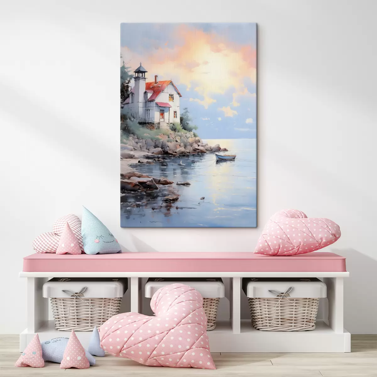Paveikslas Namas paplūdimyje prie jūros saulėlydžio metu Nr s41010