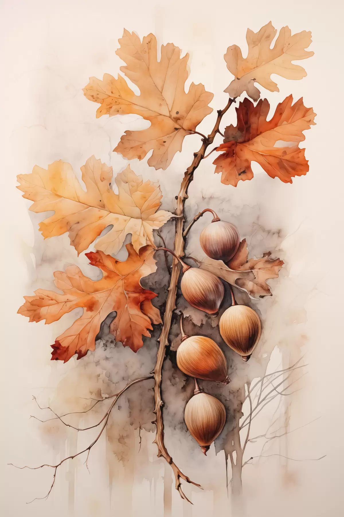 Paveikslas Ąžuolo šaka su lapais ir gilės Nr s41011