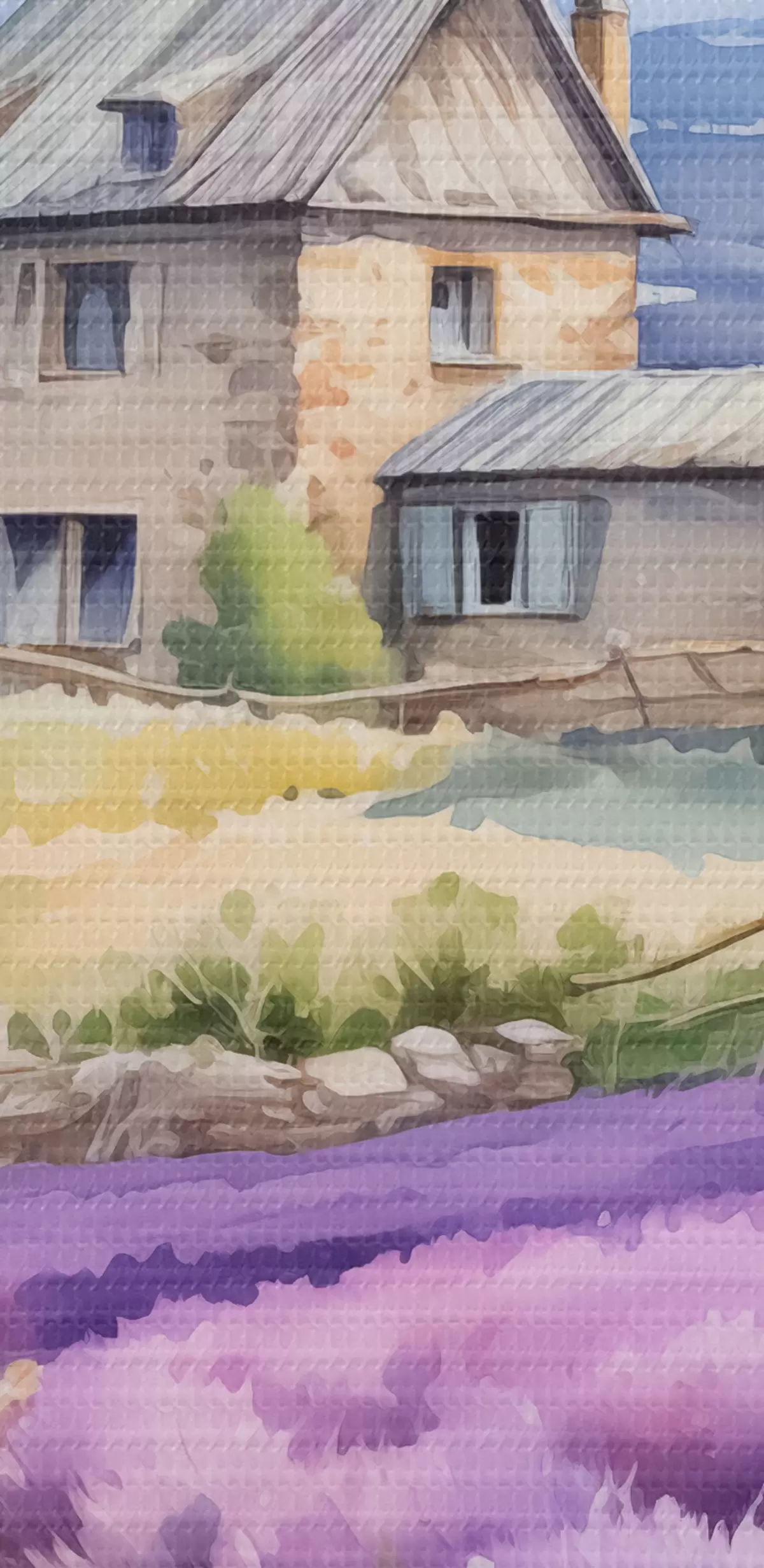 Paveikslas Kaimo namas su kalnais fone šalia levandų lauko Nr s41012