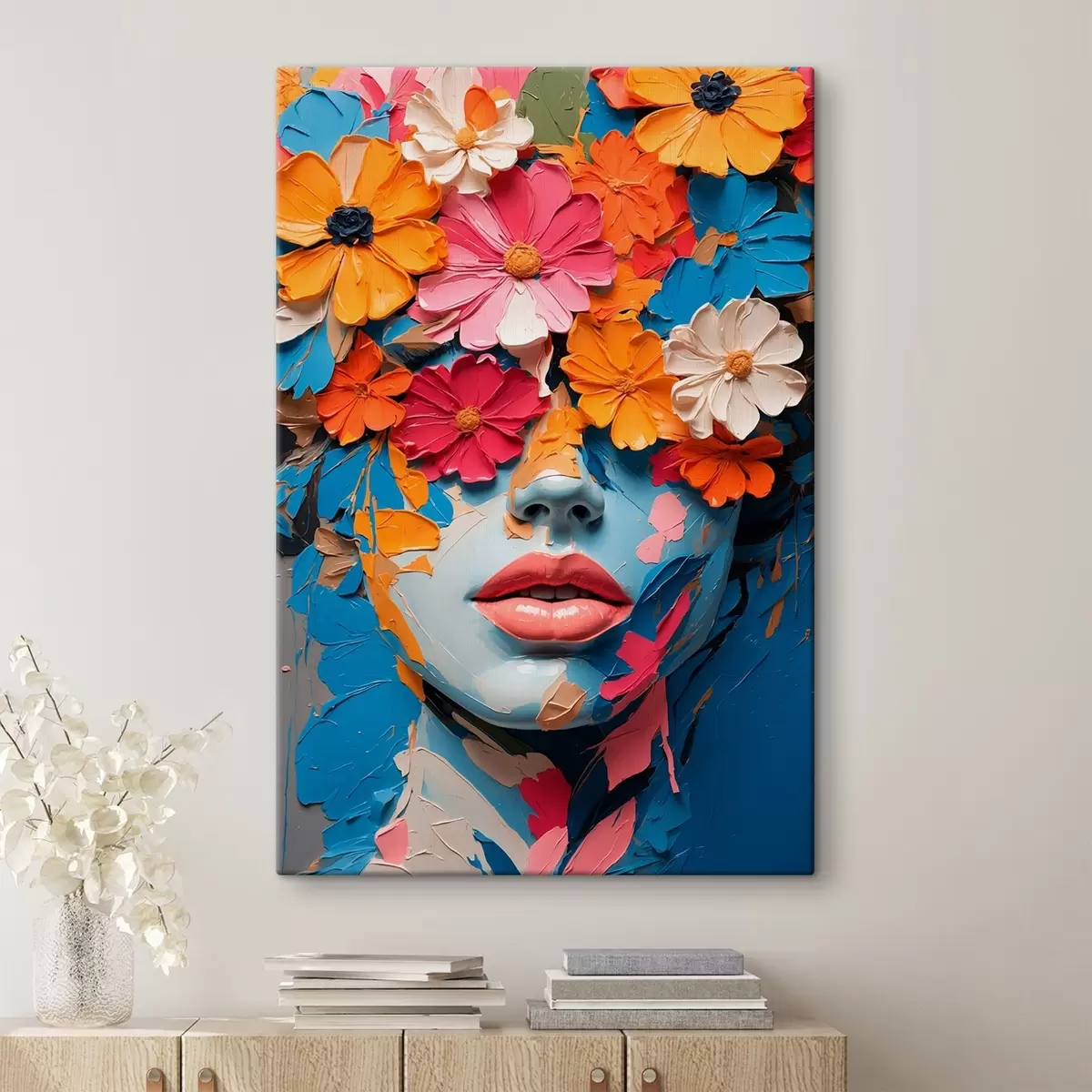 Paveikslas Mergaitės veidas aliejumi padengtas gėlėmis Nr s41023
