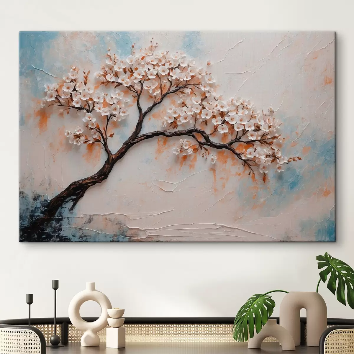 Paveikslas Žydintis medis abstrakčiame aliejiniame fone Nr s41032