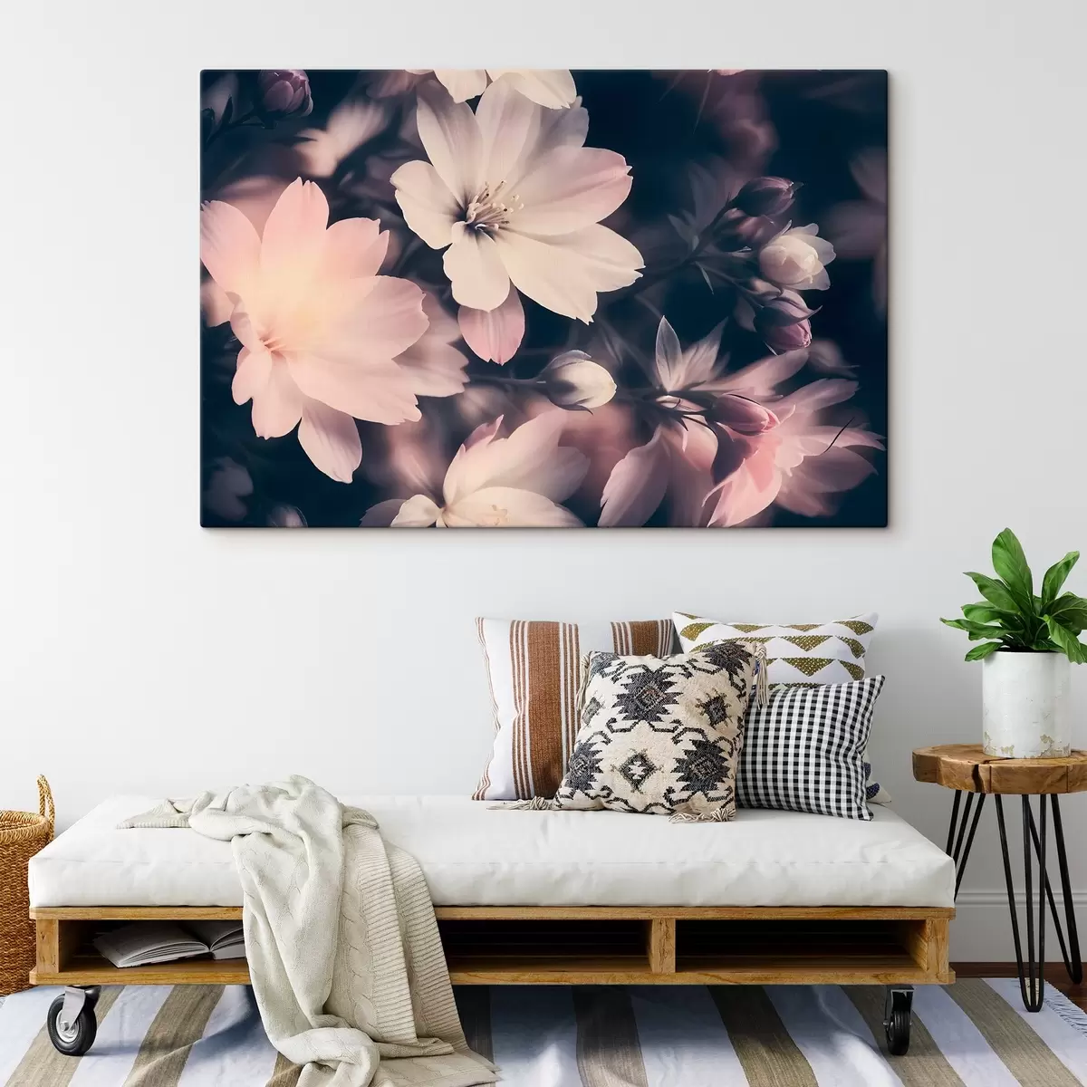 Paveikslas Minkštos rožinės ir baltos spalvos senovinės lengvos gėlės su neryškiu fonu Nr s41084