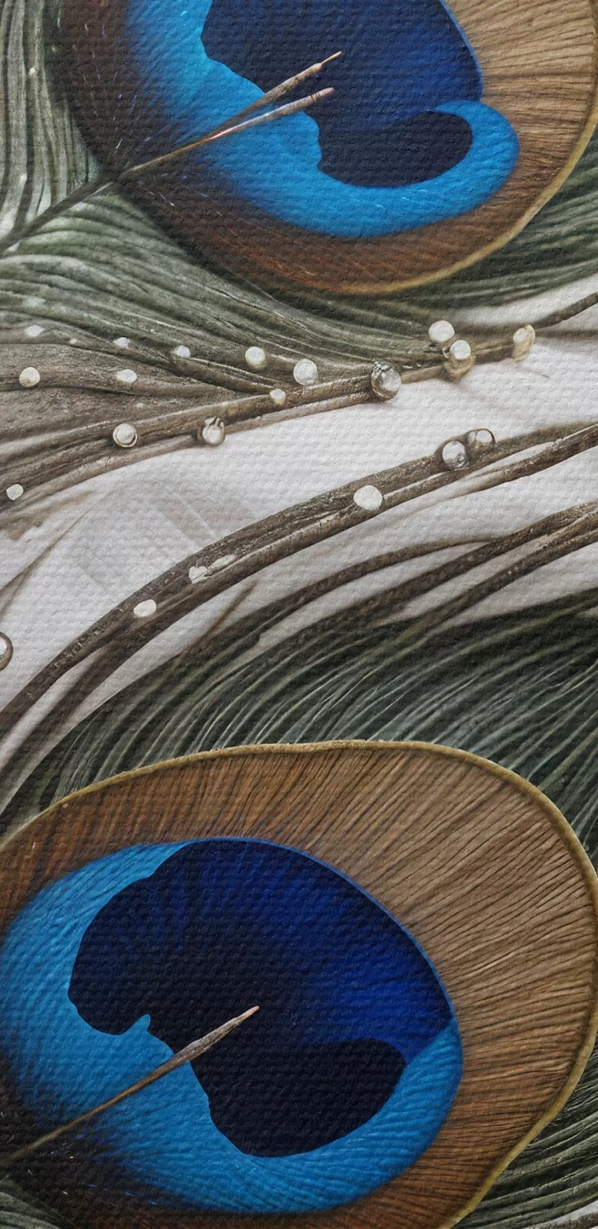 Paveikslas Ryškios povo plunksnos su sudėtingais raštais ir ryškiais mėlynais raštais Nr s41103