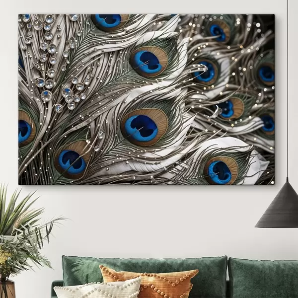 Paveikslas Ryškios povo plunksnos su sudėtingais raštais ir ryškiais mėlynais raštais Nr s41103