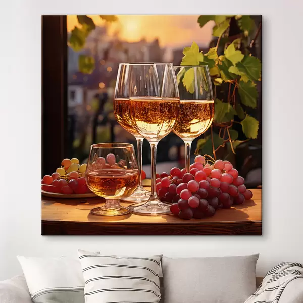 Paveikslas taurės su vynu, vynuogės ant stalo, natiurmortas Nr s41104