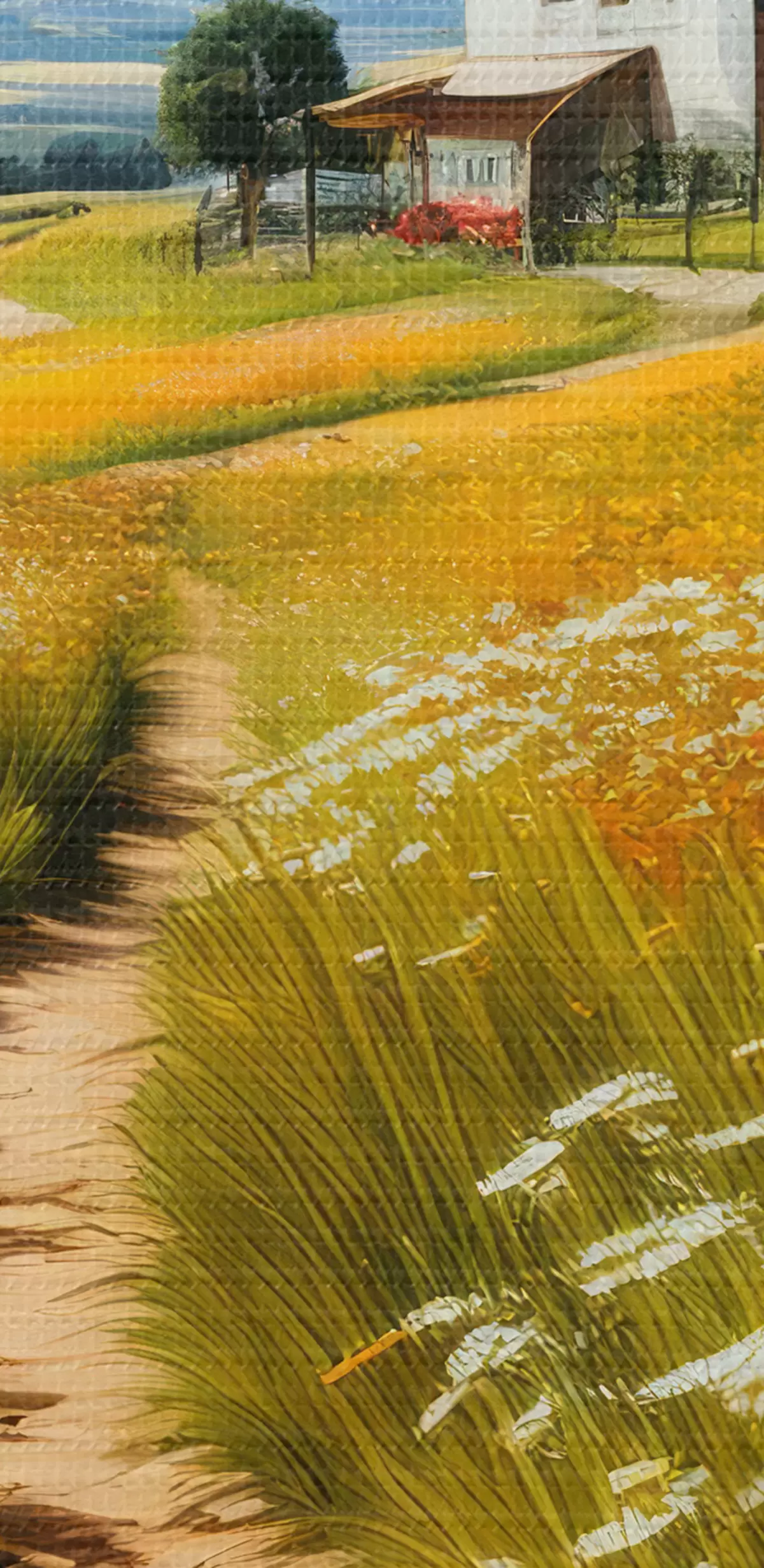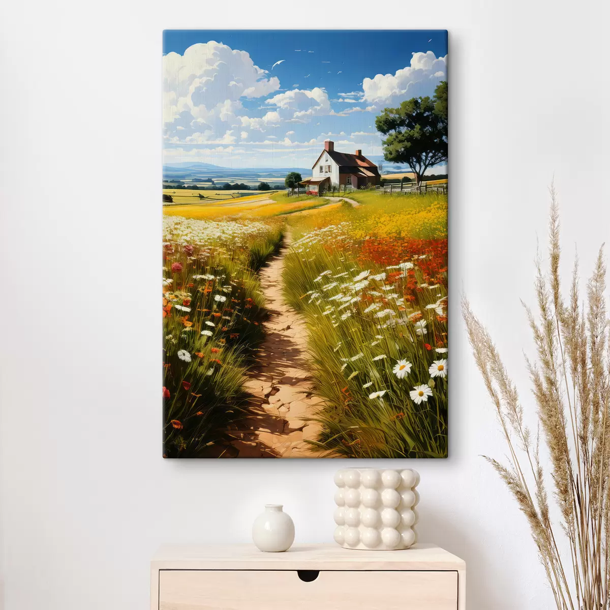 Paveikslas takas žydinčiame lauke ir namas Nr s41109