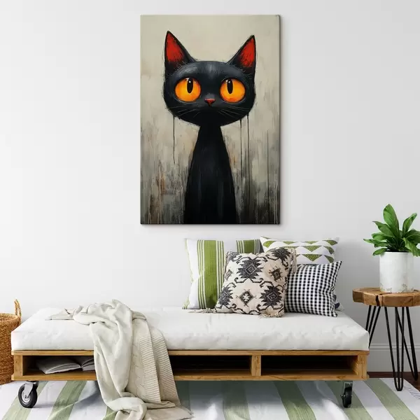 Paveikslas Juoda akvarelė katė geltonomis akimis Nr s41120