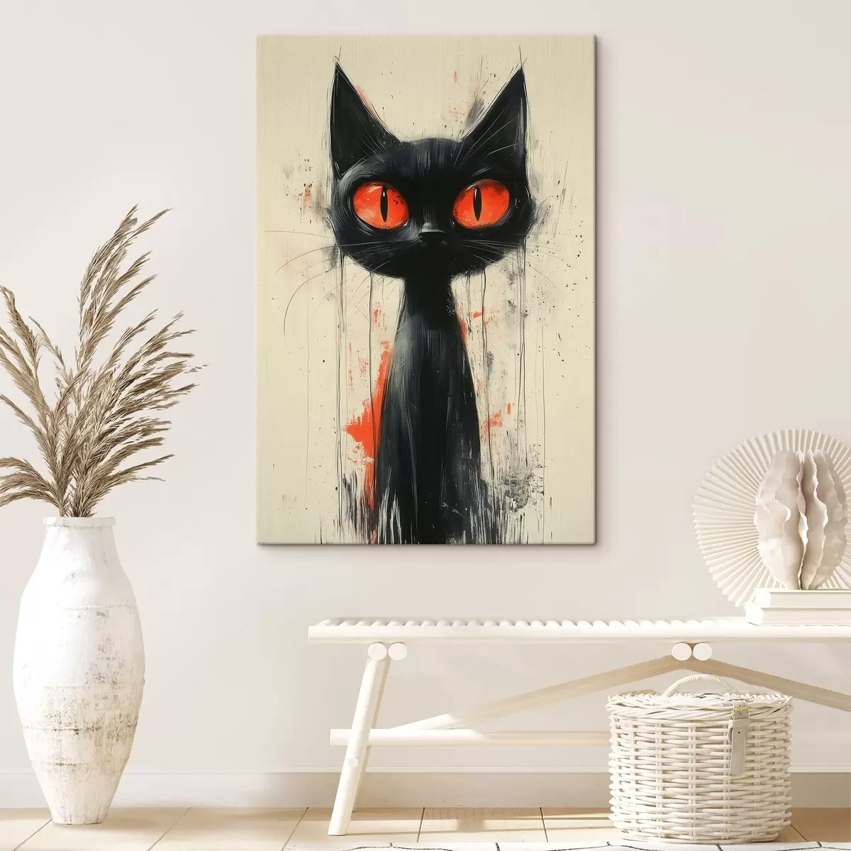 Paveikslas Rankomis piešta juoda katė akvarelės dėmių fone Nr s41121