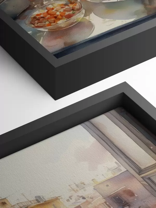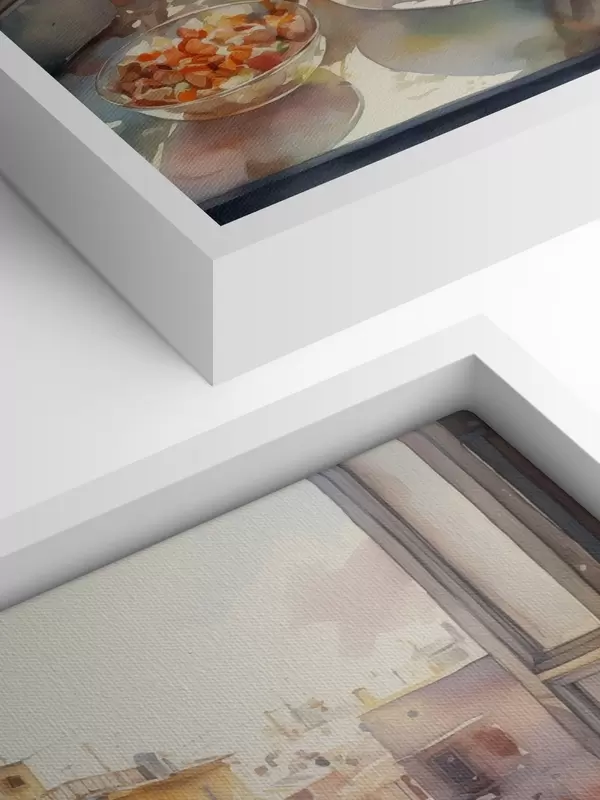 Paveikslas Akvarelė vakarienė, miesto vaizdas, gėlės, gamta, žalios salotos Nr s41166
