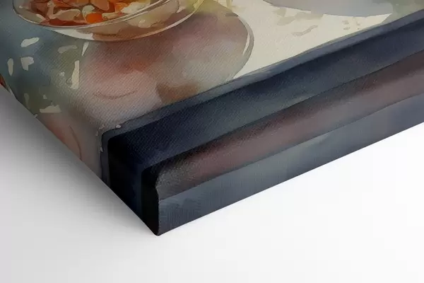 Paveikslas Akvarelė vakarienė, miesto vaizdas, gėlės, gamta, žalios salotos Nr s41166