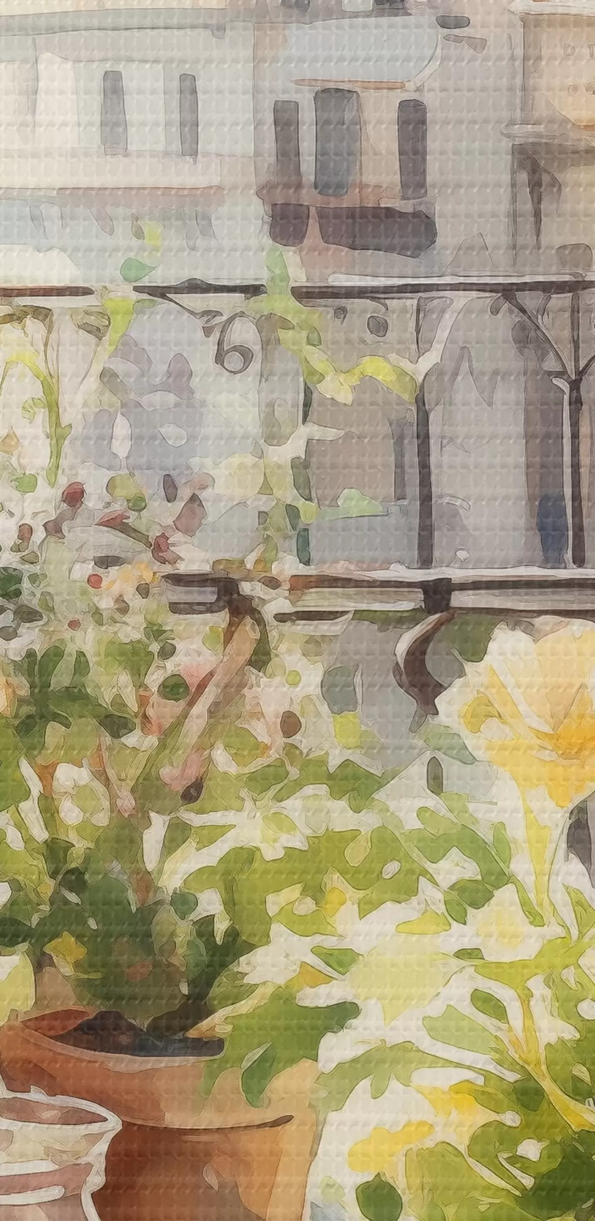 Paveikslas Romantiška vakarienė su vaizdu į miestą, akvarelė, gėlės Nr s41168