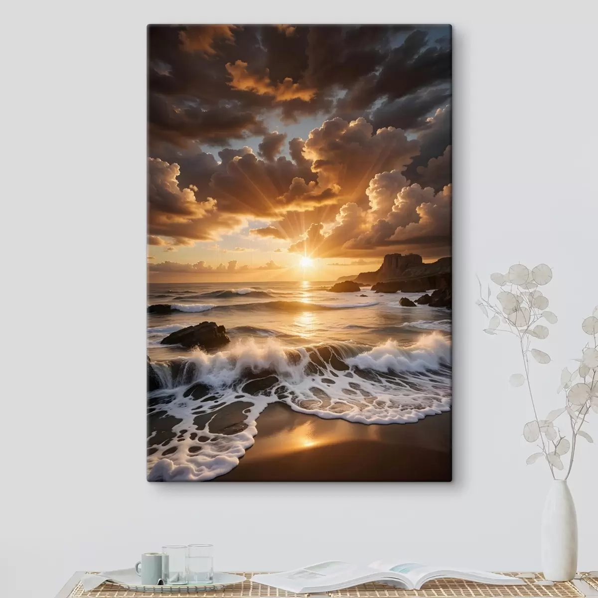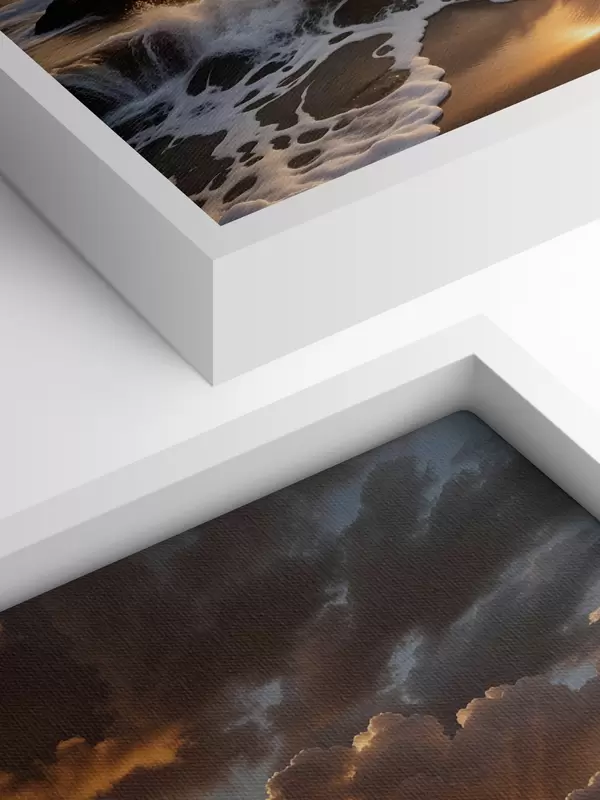 Paveikslas Dramatiškas saulėlydis virš uolėtos pakrantės, skalaujamos bangos ir įspūdingi debesys danguje Nr s41245