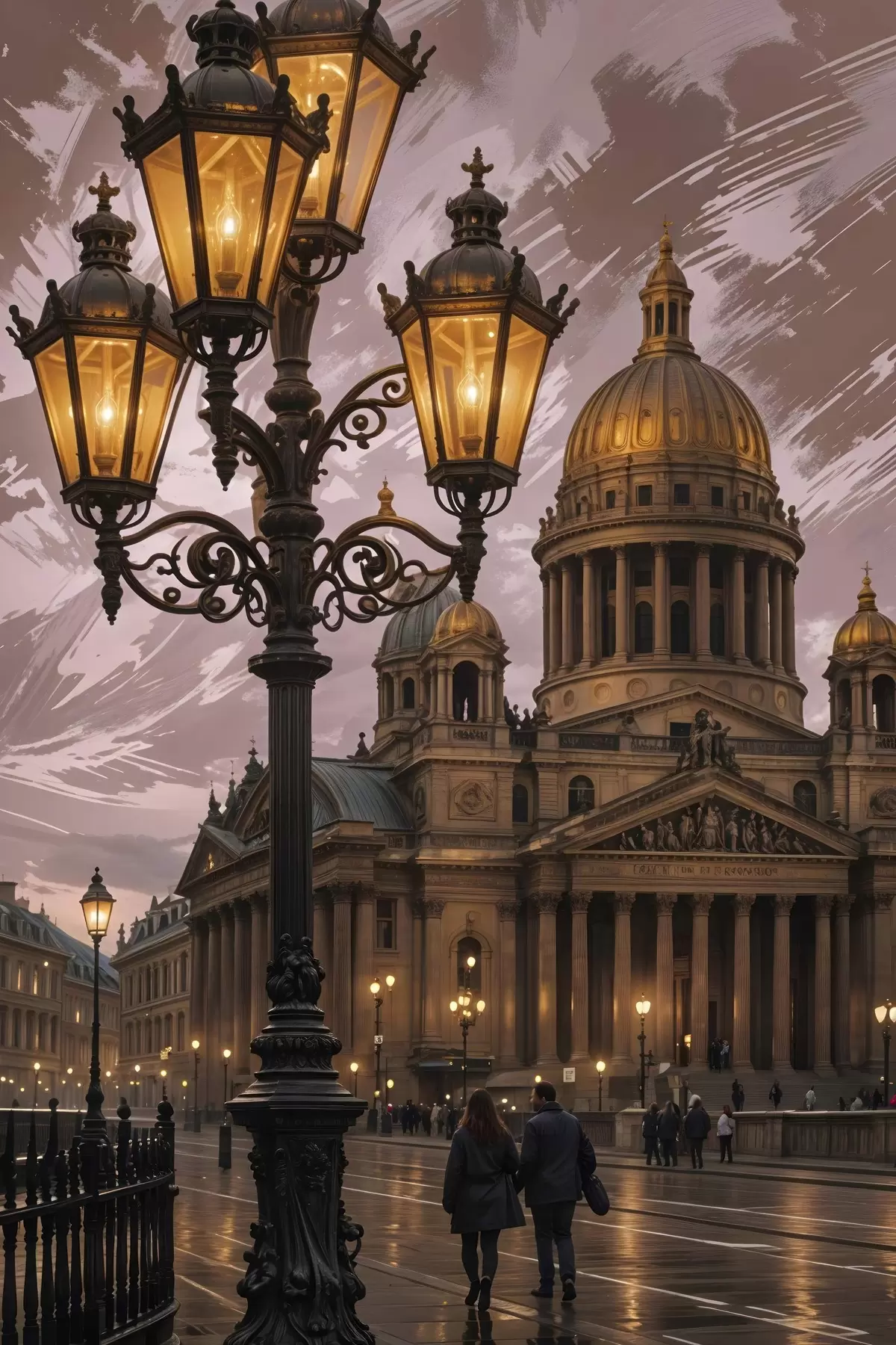 Paveikslas Didinga katedra su dideliu kupolu ir puošnia architektūra, kurią naktį apšviečia gatvės žibintai Nr s41253