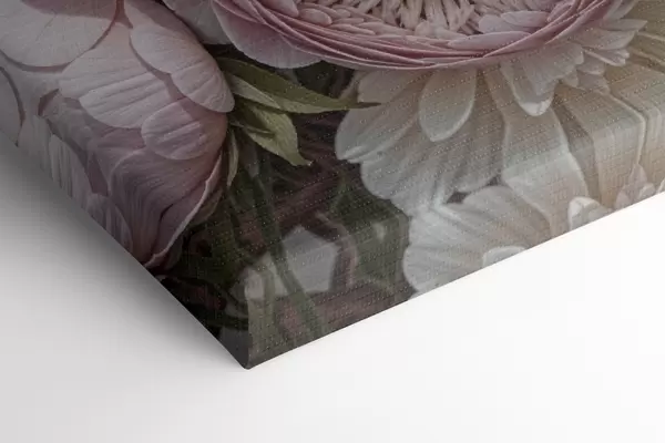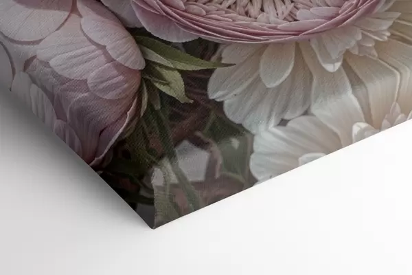 Paveikslas Puokštė iš pastelinių rausvų bijūnų ir baltų margučių, sukomponuota į gražią gėlių kompoziciją Nr s41255