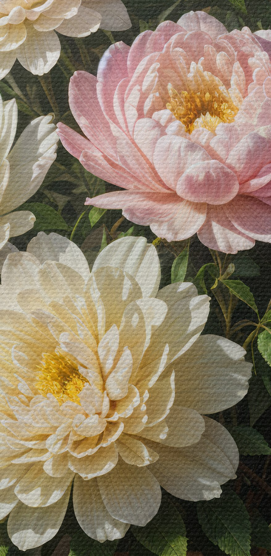 Galima užsakyti trijų rūšių medžiagą: "Economic Canvas" - tanki ir patvari medžiaga skaitmeninei spaudai, identiška dailininko drobės medžiagai, vandeniui atsparus paviršius, tikroviškas detalių atkūrimas, vidutinio grūdėtumo medžiaga. Premium Canvas - tekstūra primena dailininko drobę (susipynę smulkūs siūlai). Minkštas, detalus vaizdo atkūrimas ant matinio paviršiaus. Eco-Premium - aukštos kokybės 100 % medvilninis audinys. Dėl natūralių medvilnės pluoštų medžiaga yra patvari ir atspari nusidėvėjimui. Puikus spalvų atkūrimas ir detalumas.