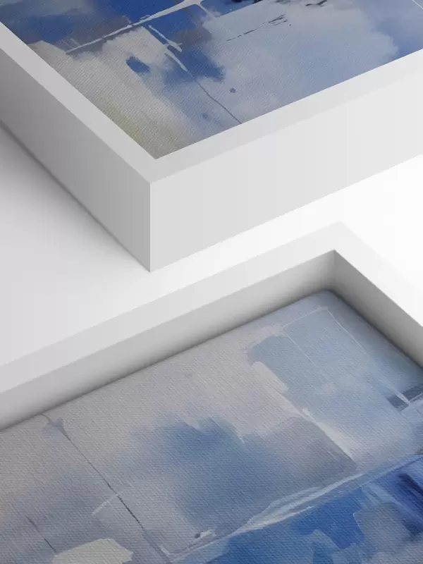Paveikslas Šiuolaikinė mėlynos, baltos ir pilkos spalvų abstrakcija su neryškiomis linijomis ir formomis Nr s41269