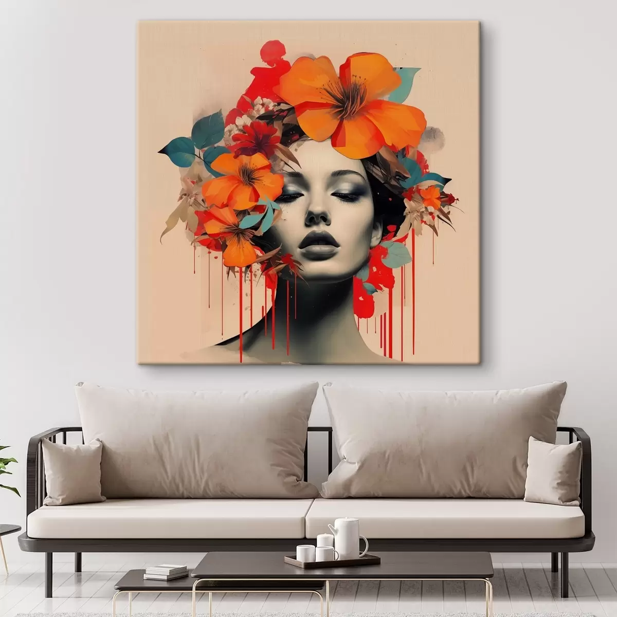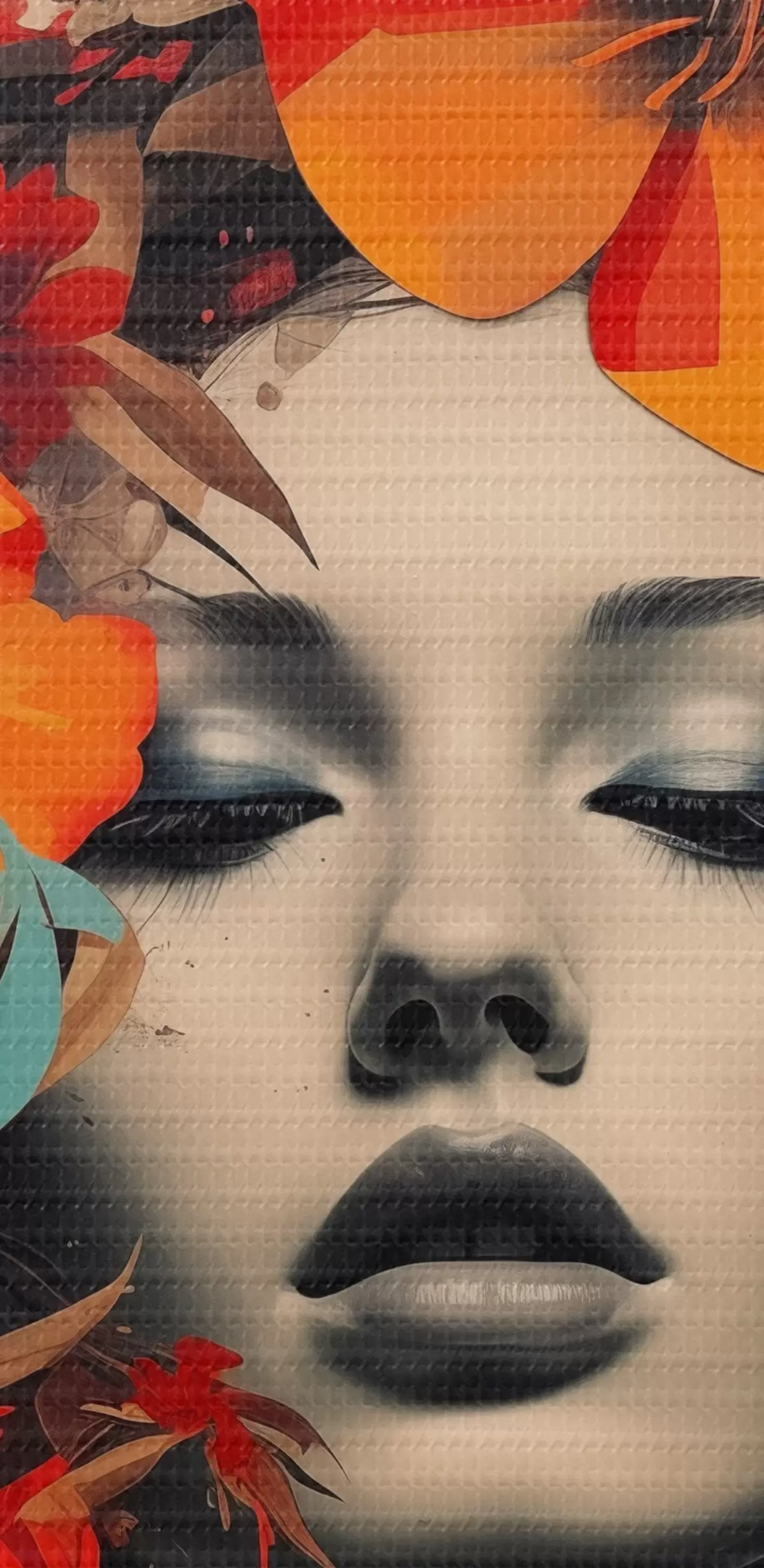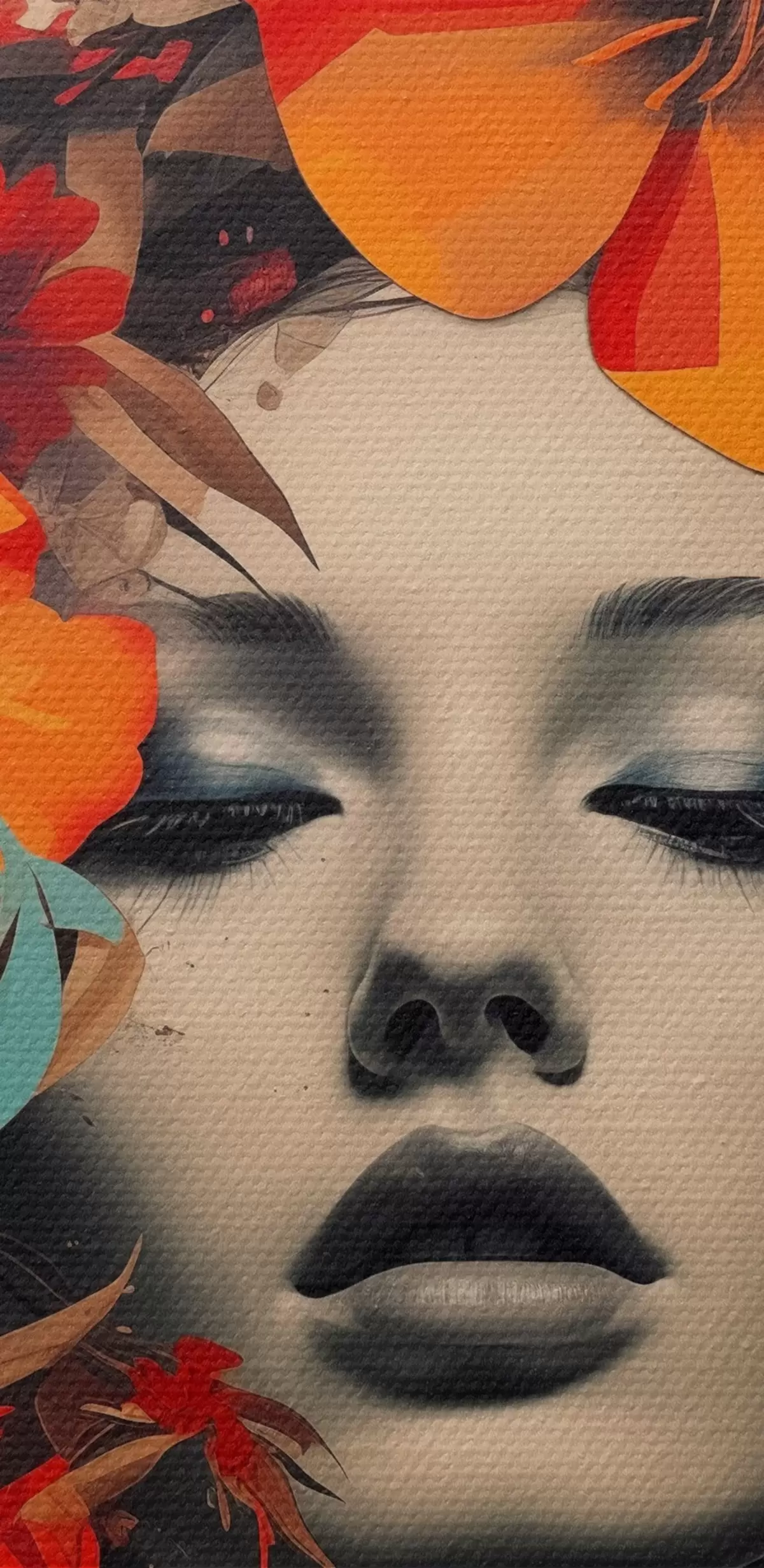 Paveikslas Mergaitės portretas koliažo stiliumi su gėlėmis Nr s41271