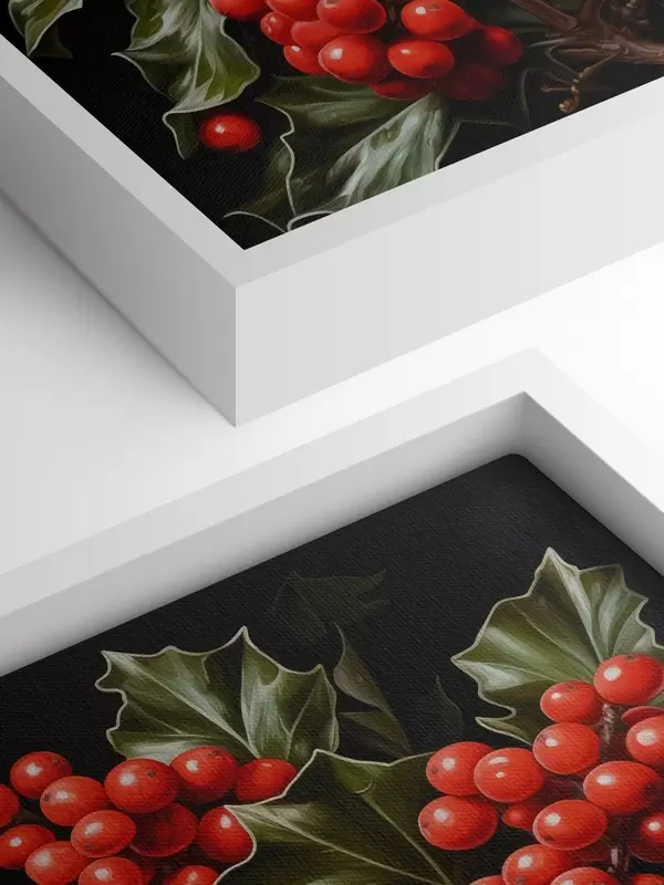 Paveikslas Holly uogos ir lapai tamsiame fone Nr s41273