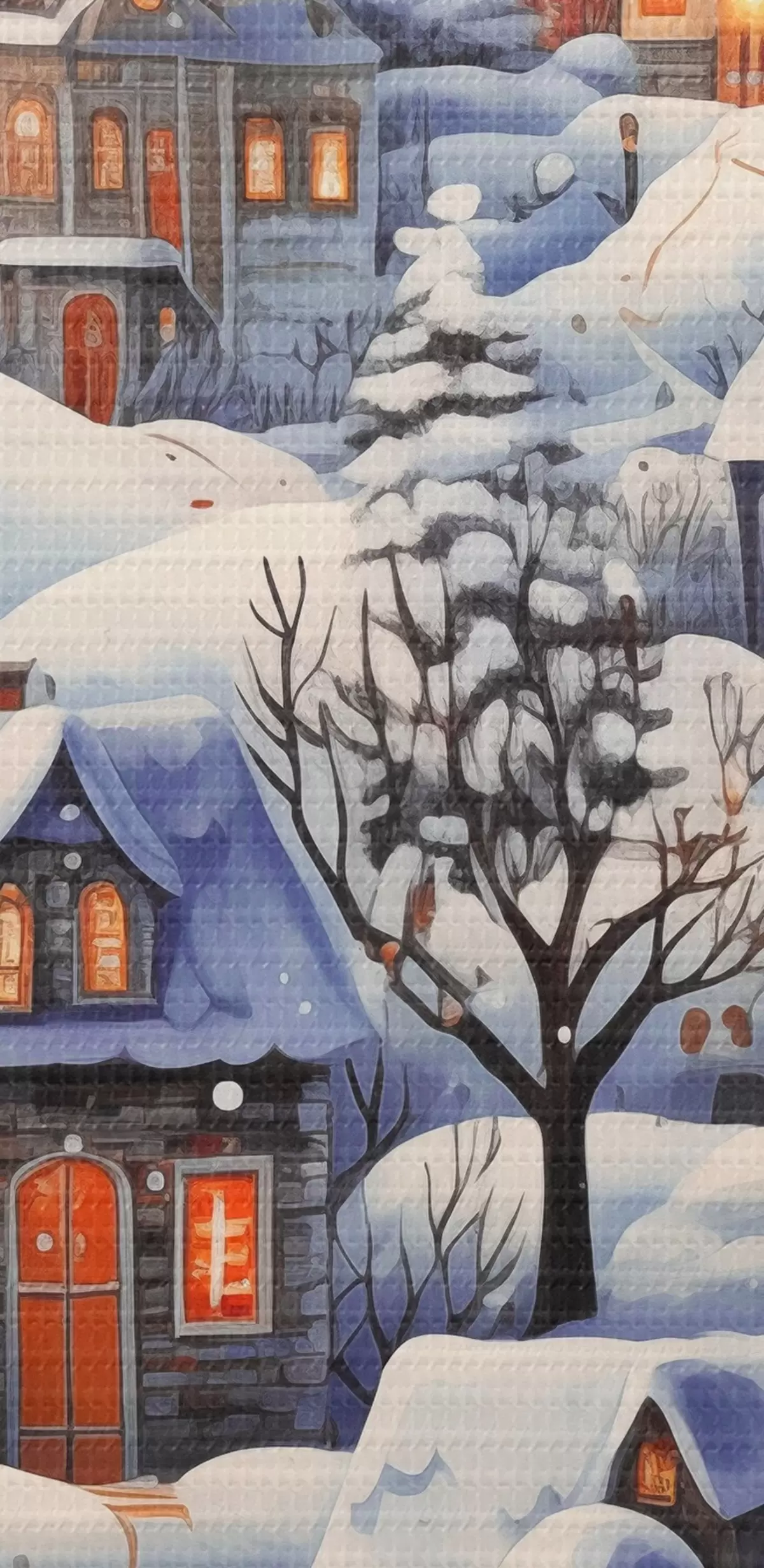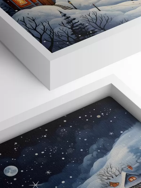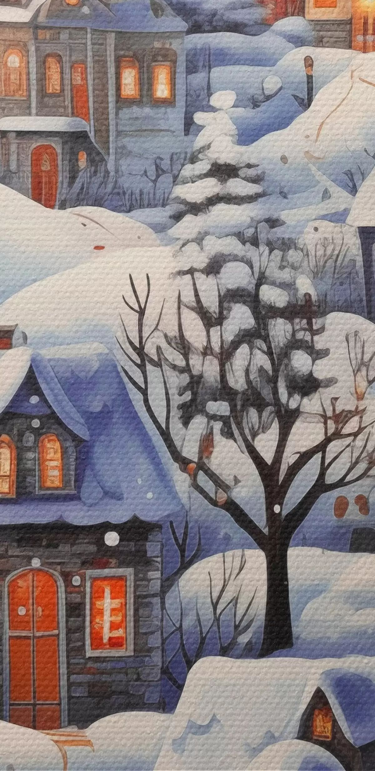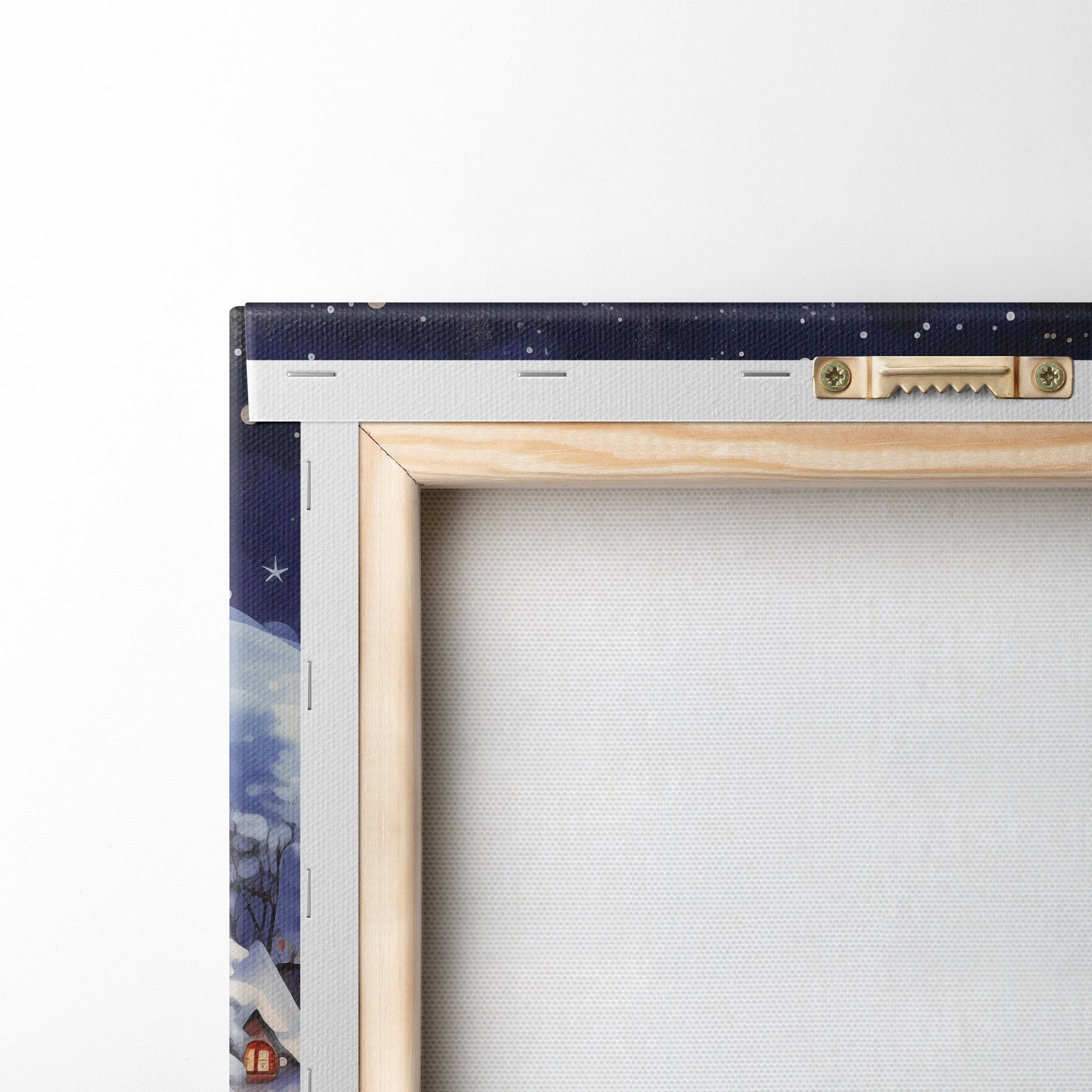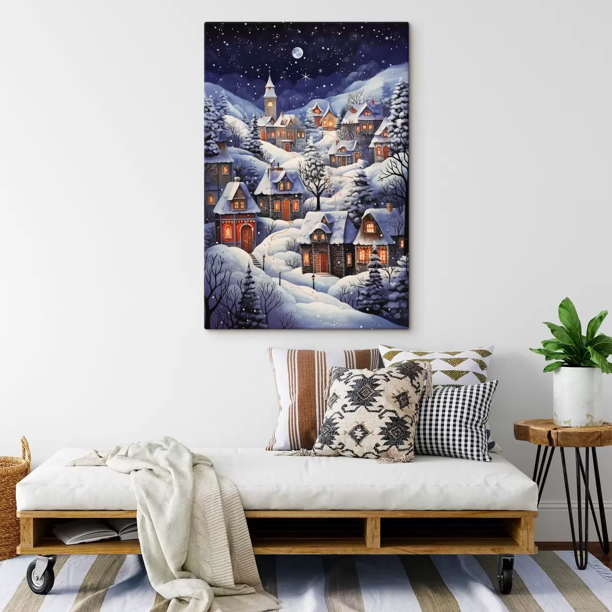 Paveikslas Žiemos kraštovaizdis su apsnigtais kaimo namais nakties žvaigždėto dangaus fone Nr s41275