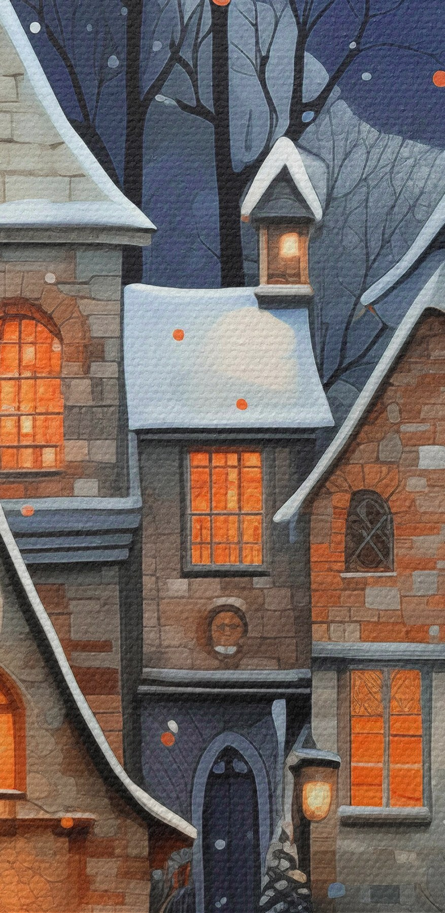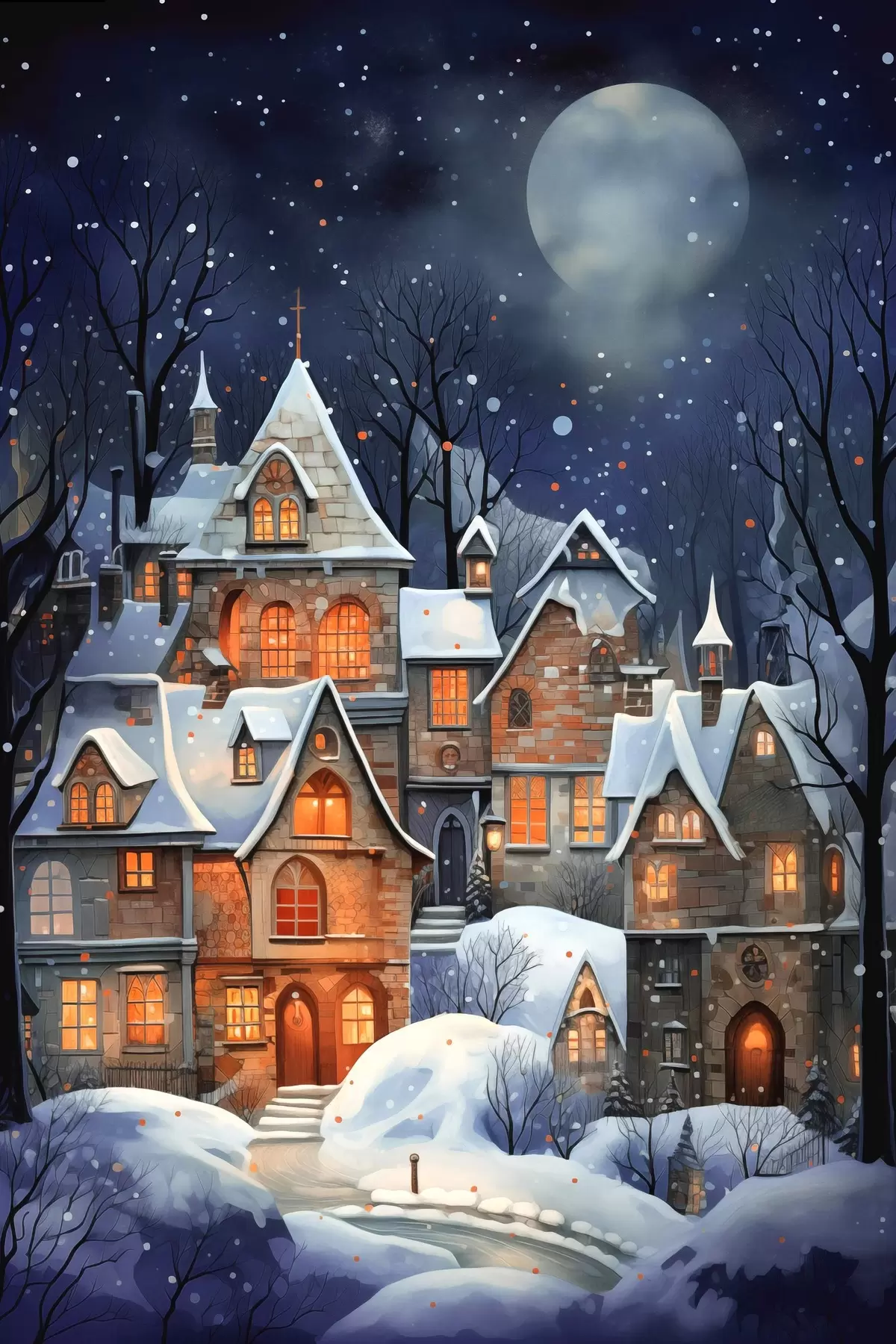 Paveikslas Namai sniege žvaigždėto nakties dangaus fone Nr s41276