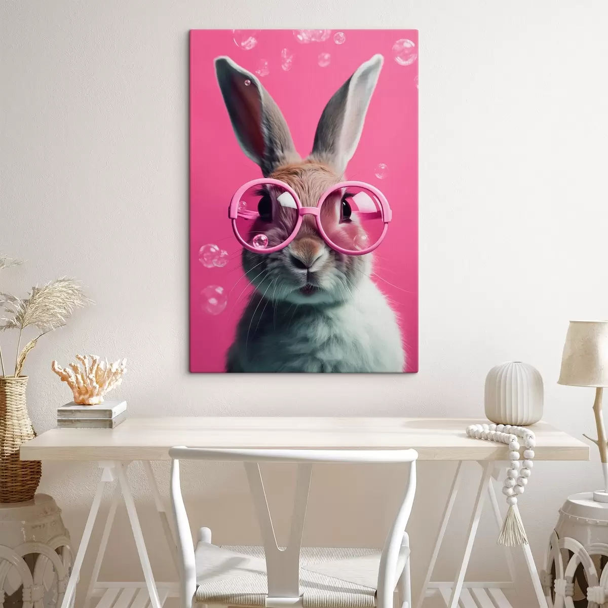 Paveikslas Triušis rausvais akiniais rausvame fone Nr s41280