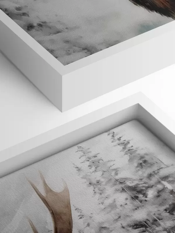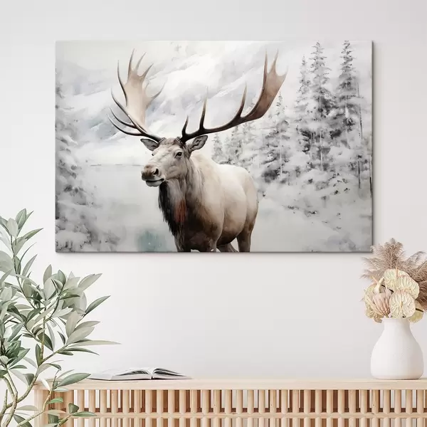Paveikslas Briedis žiemos miško sniego fone akvarelė Nr s41284