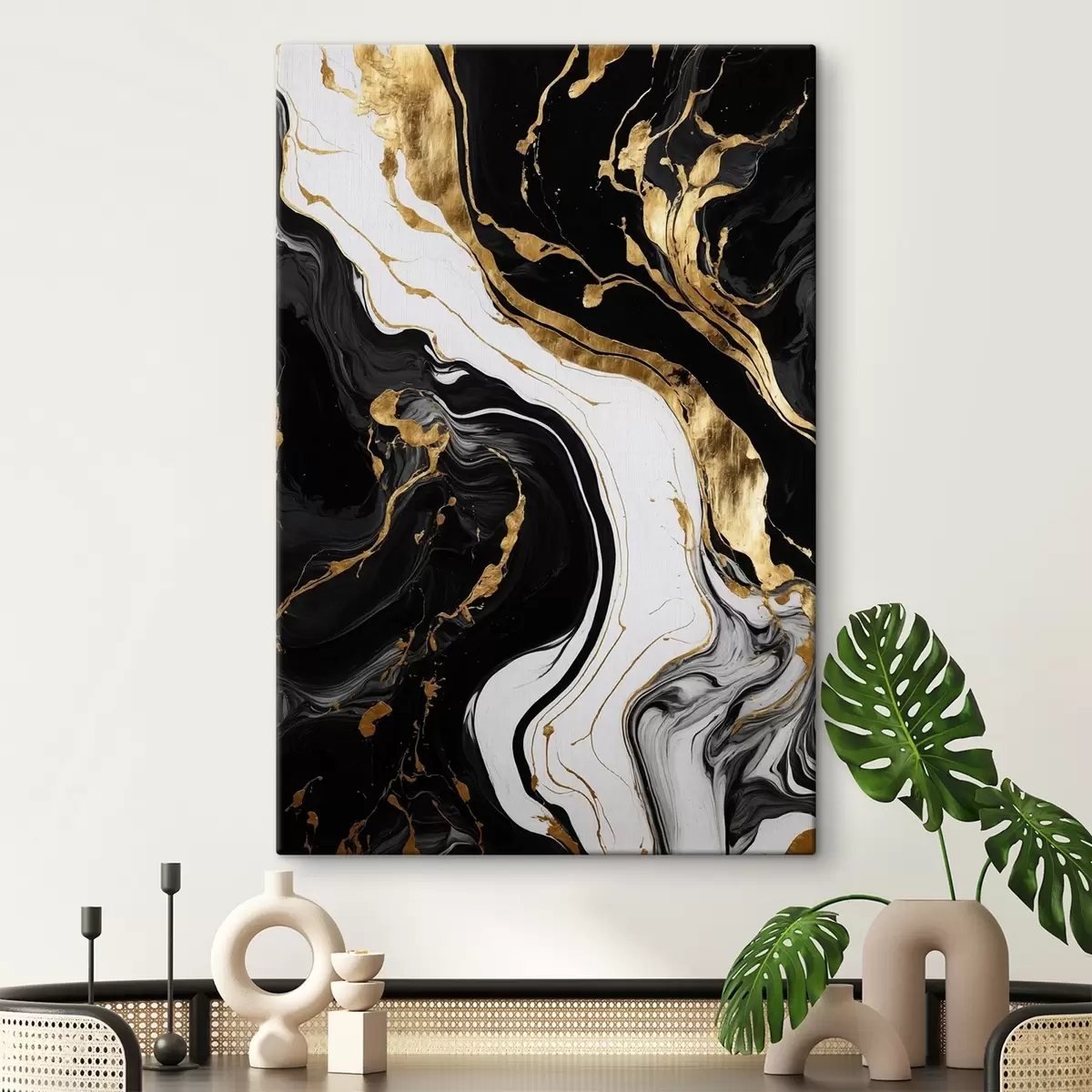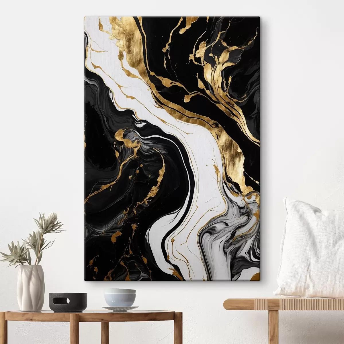 Paveikslas Juodai balta abstrakti tapyba su geltonomis dėmėmis Nr s41292