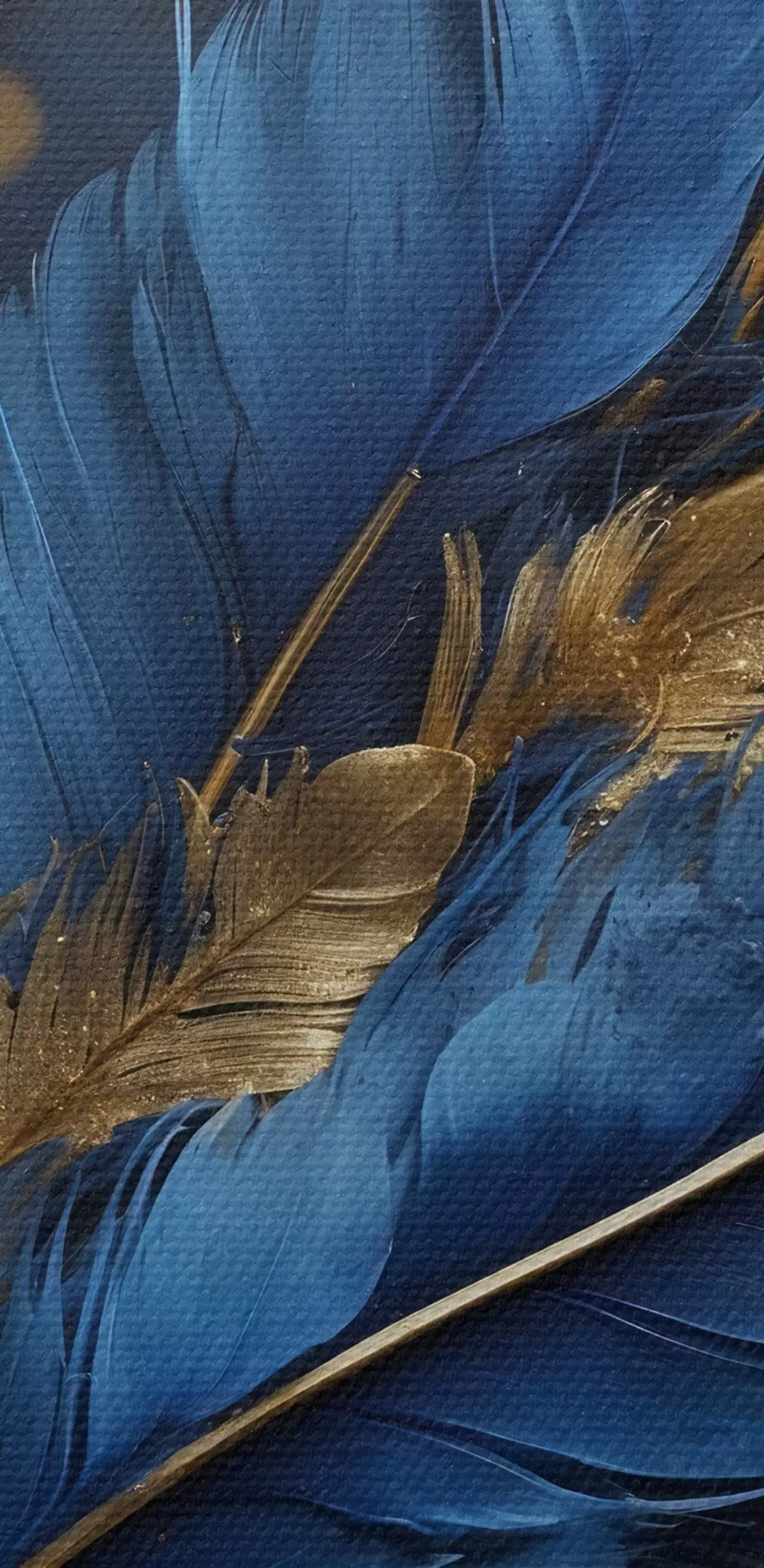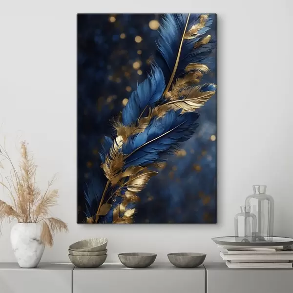 Paveikslas Mėlynai geltonos plunksnos neryškiame fone Nr s41296