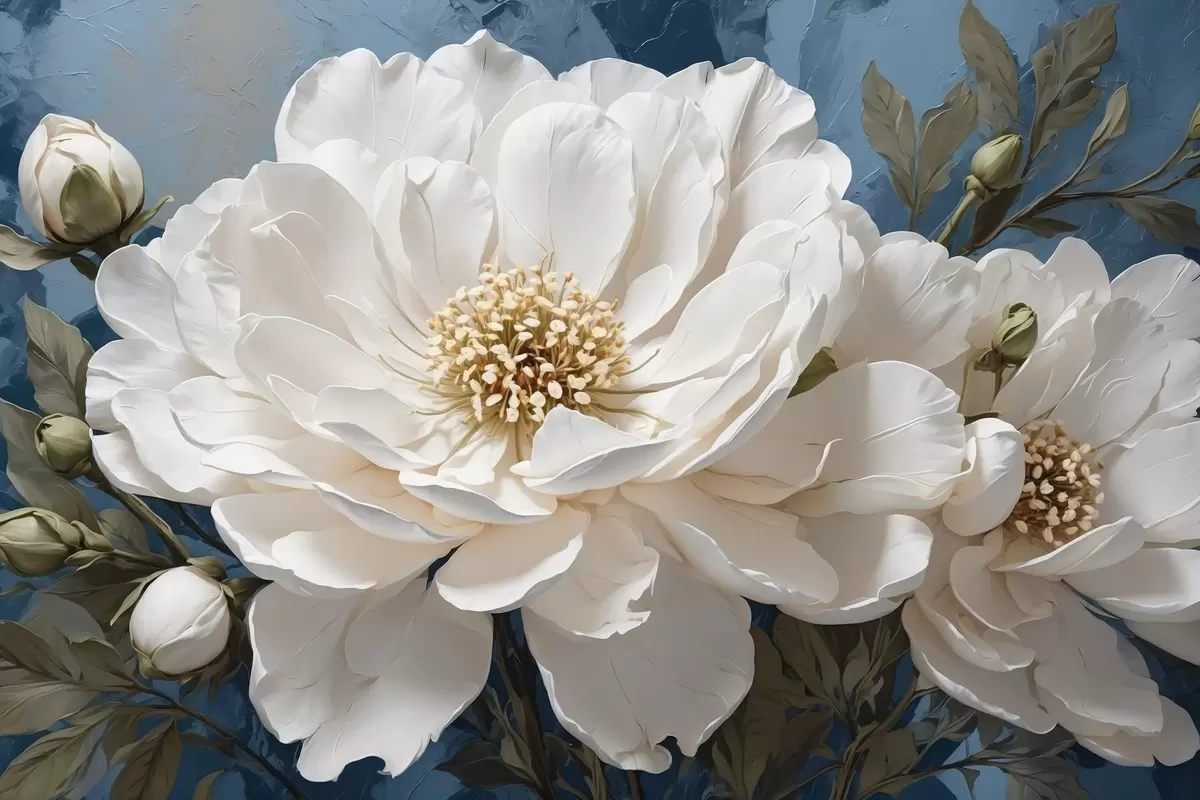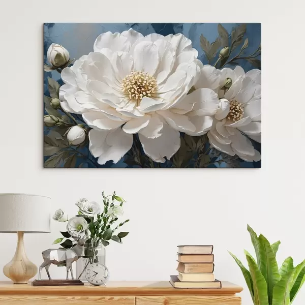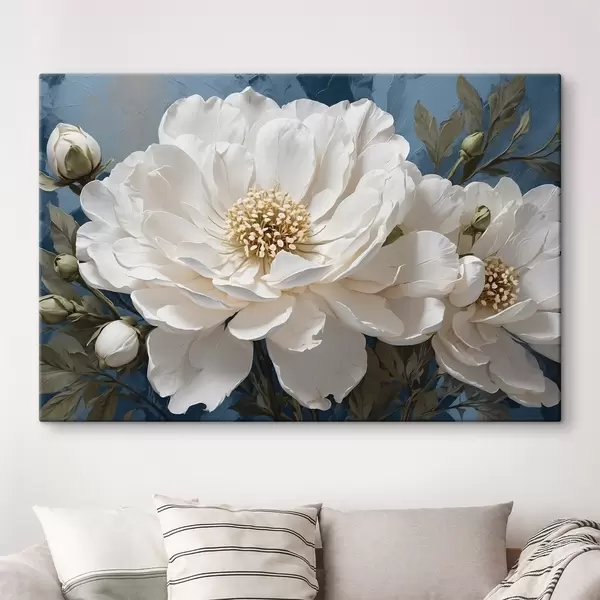 Paveikslas Baltos gėlės mėlyname fone Nr s41313