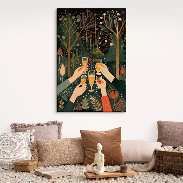 Paveikslas Šventė, šampano taurės, Kalėdos, miškas, abstraktus menas Nr s41368