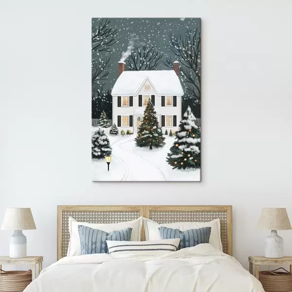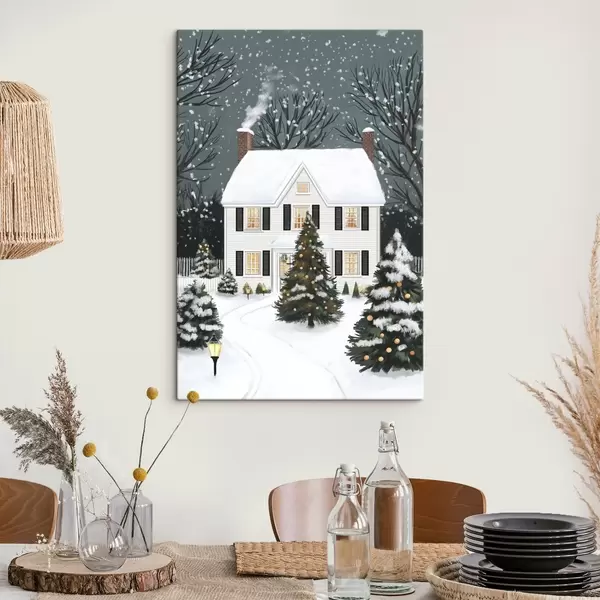 Paveikslas Žiemos stebuklų šalis, namas, pušys, kaimiškas, žiemos peizažas, miškas Nr s41370