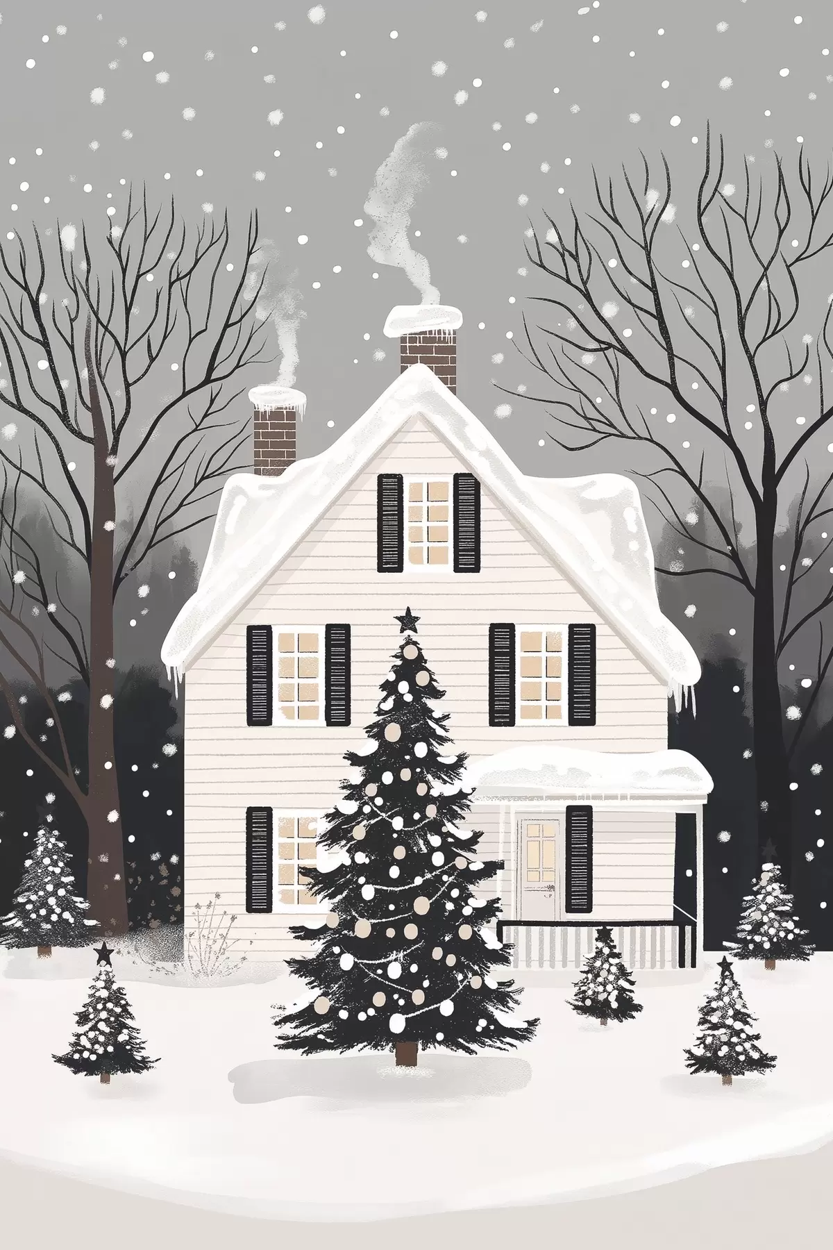 Paveikslas Žiemos miestas, papuošta pušis, Kalėdos, miškas, gražus namas Nr s41371