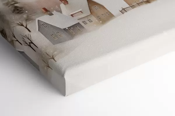 Paveikslas Žiemos kaimas, akvarelė, snaigės, švelnios spalvos, medžiai, peizažas Nr s41381