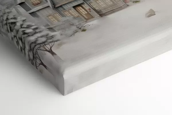 Paveikslas Gražus žiemos kraštovaizdis su kaimu, pušimis, namais, kalnais Nr s41384
