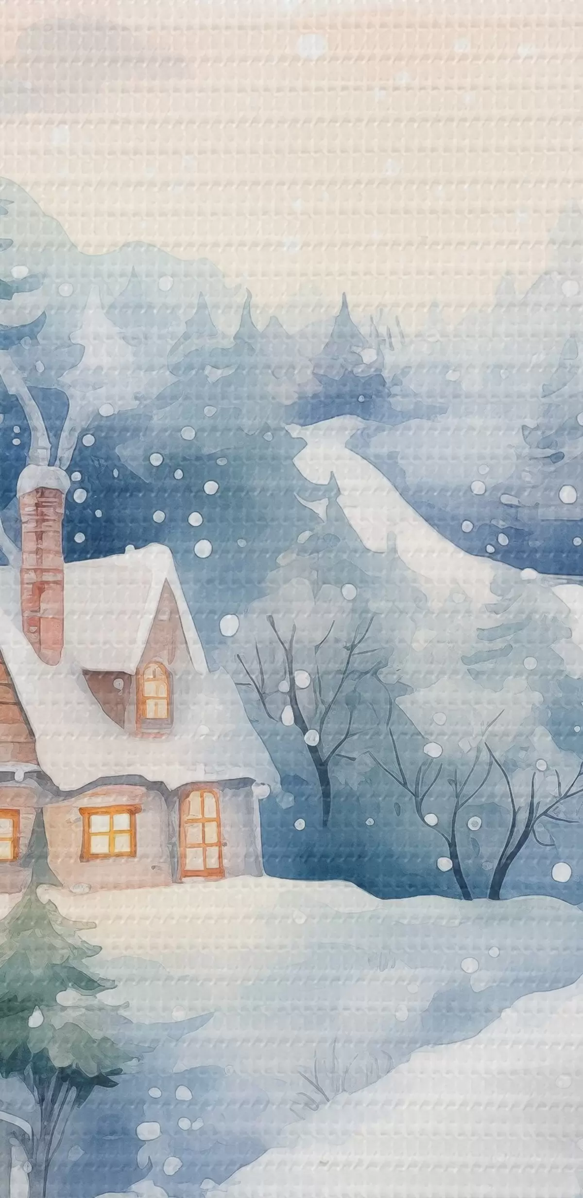 Paveikslas Akvarelė žiemos peizažas, pušynas, namai Nr s41387