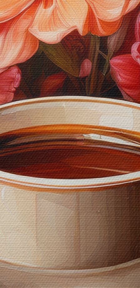 Paveikslas puodelis kavos ir gėlių puokštė Nr s41411
