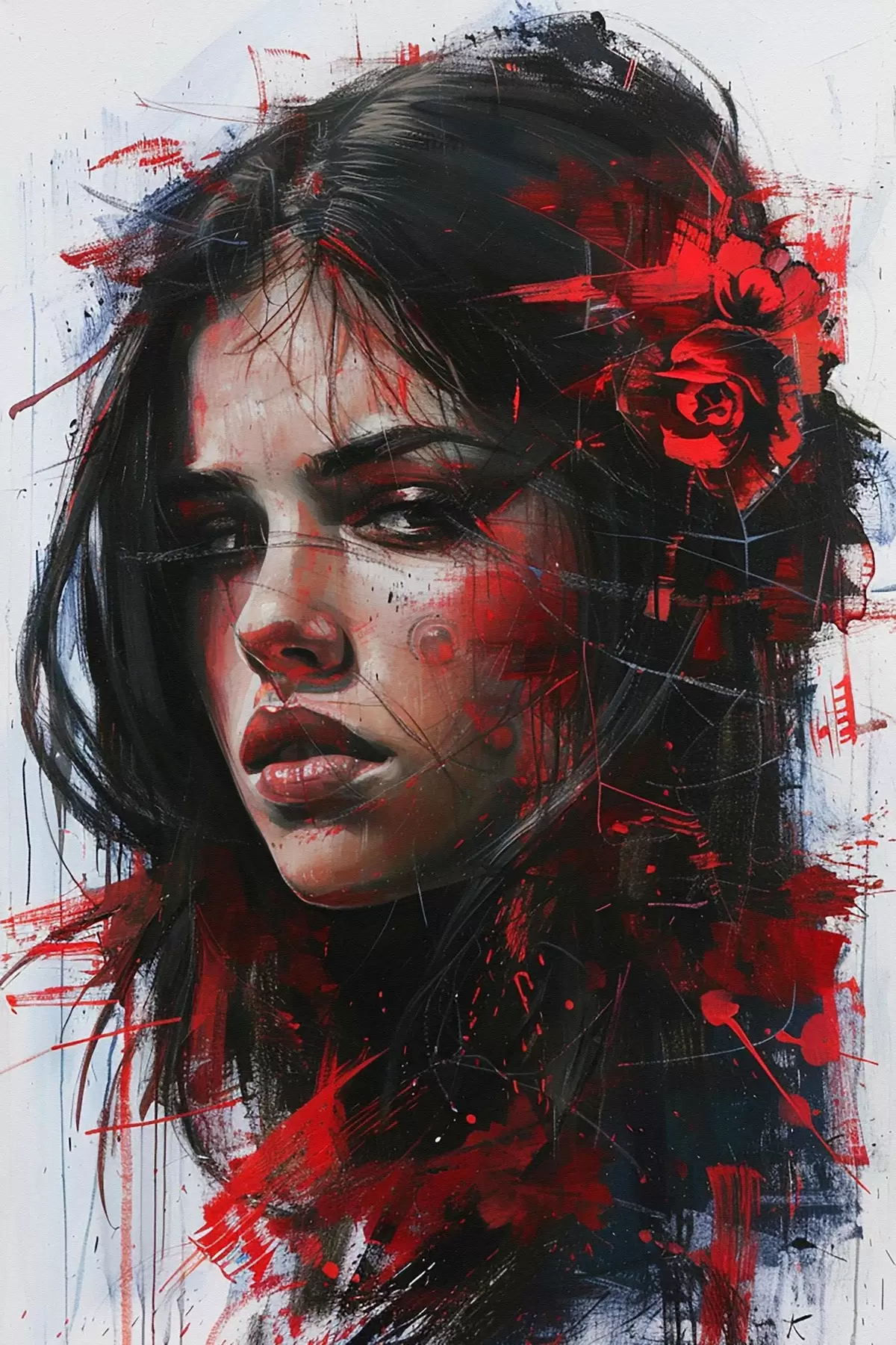 Paveikslas Mergaitė su dažais su raudona gėle Nr s41415