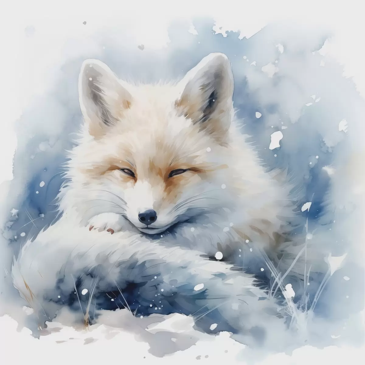 Paveikslas Lapė sniege imituoja akvarelės iliustraciją Nr s41436