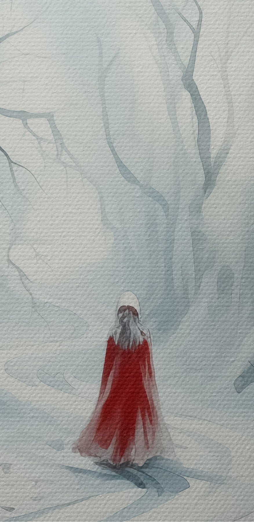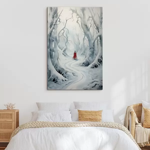 Paveikslas Vyras raudonu apsiaustu viduryje žiemos miško Nr s41438