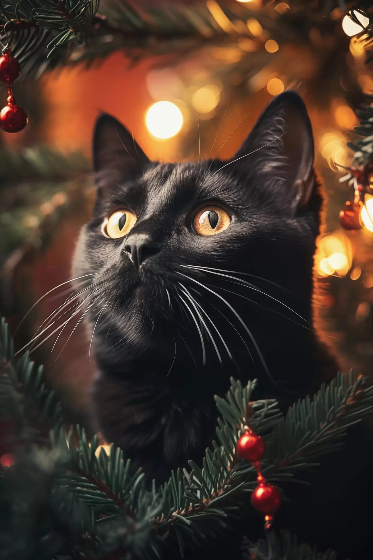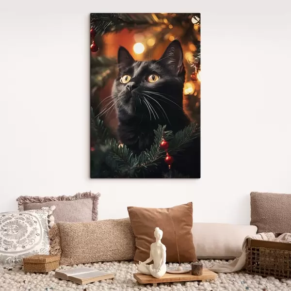 Paveikslas Juoda katė Naujųjų metų šviesų fone Nr s41441