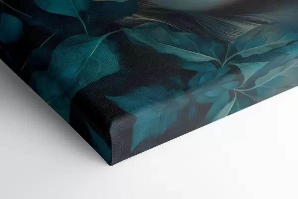 Paveikslas Moteris su pelėda žaliuose lapuose, ramus, gamta Nr s41445