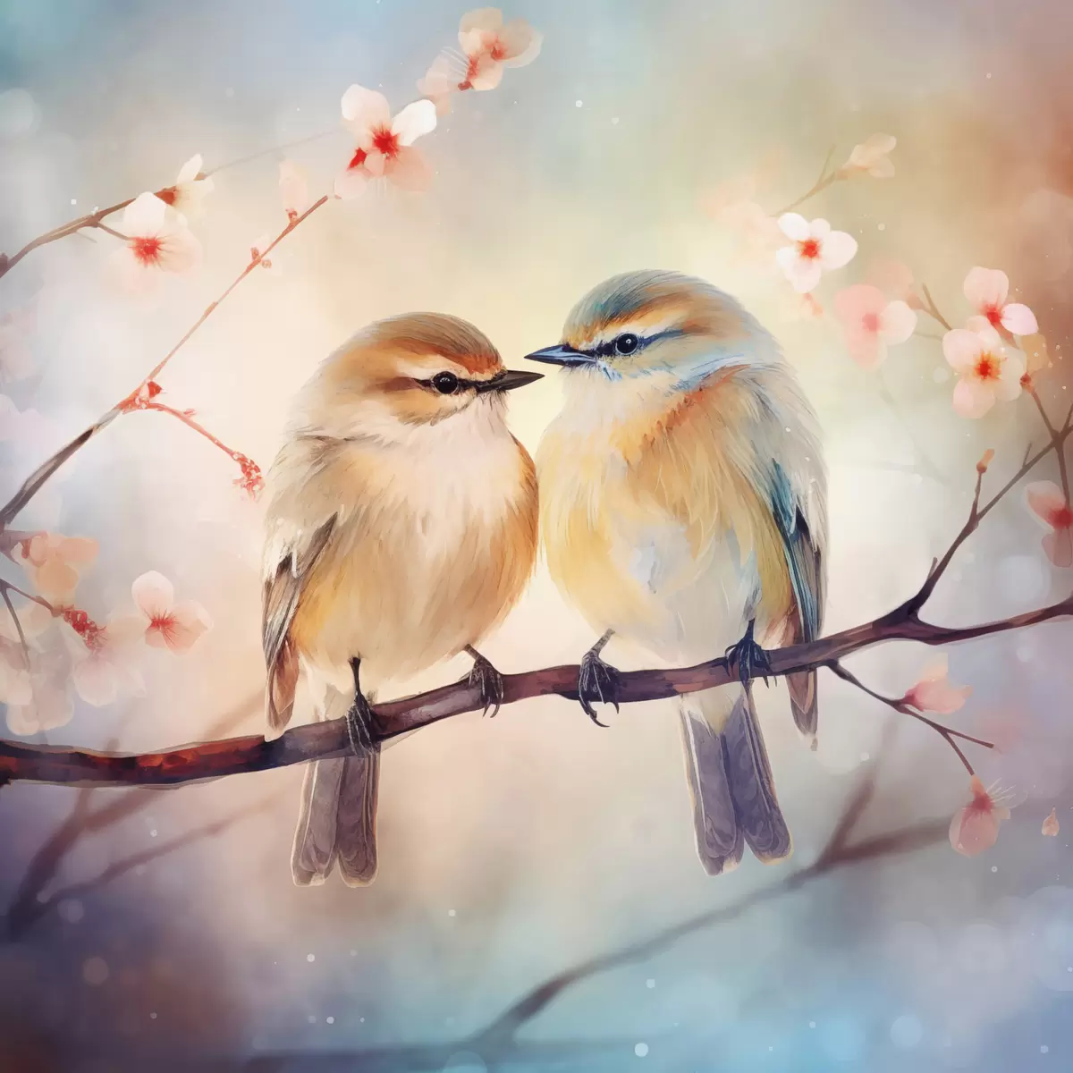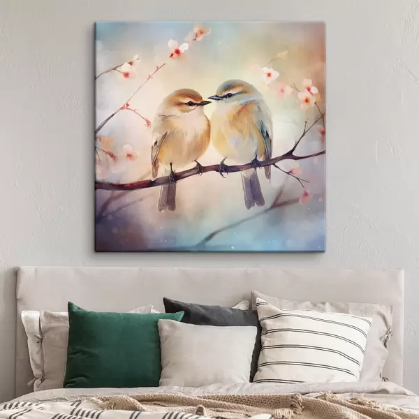 Paveikslas Ant žydinčios šakos sėdi paukščių pora Nr s41476