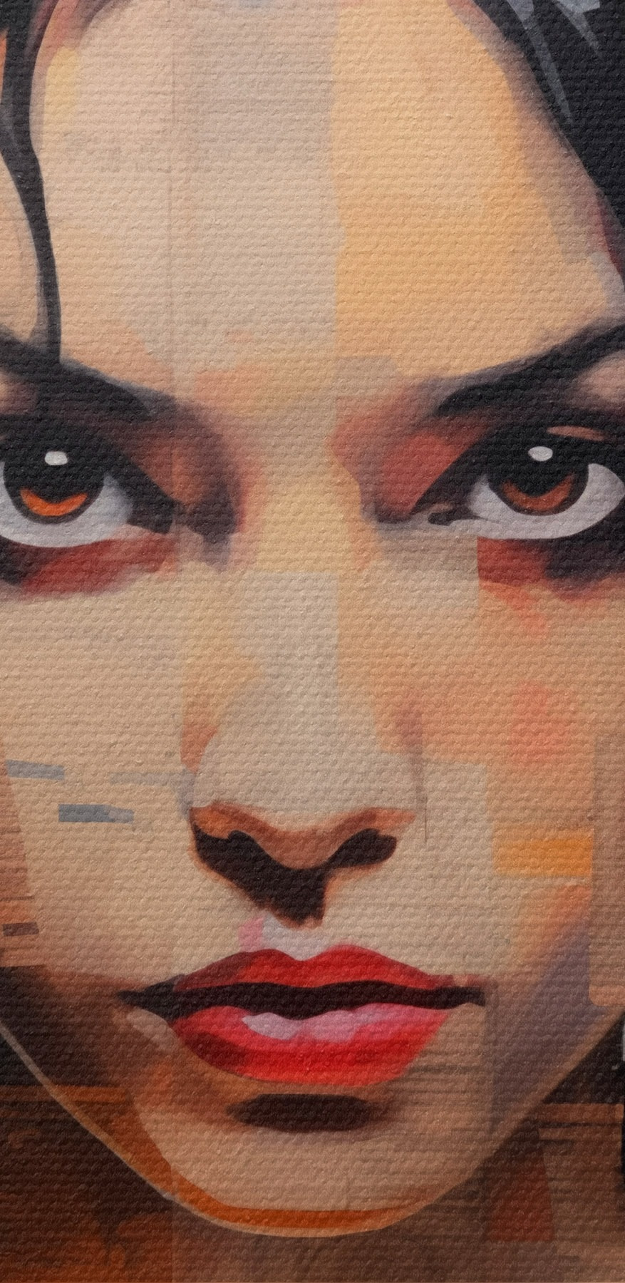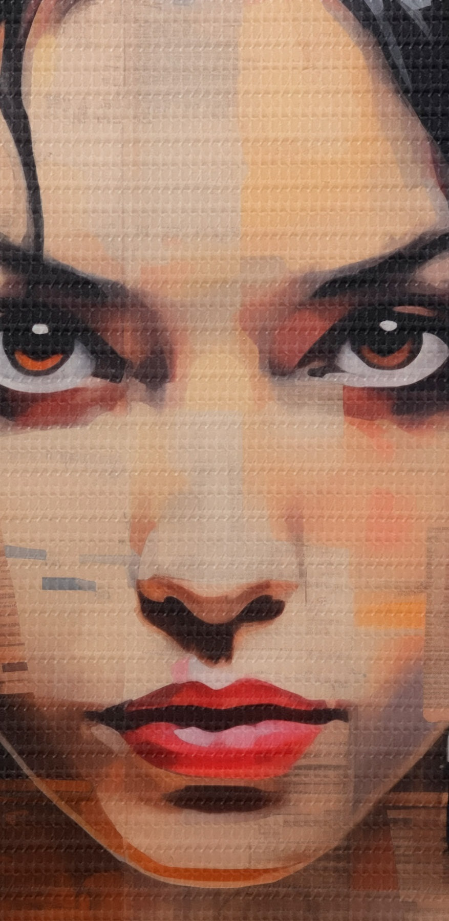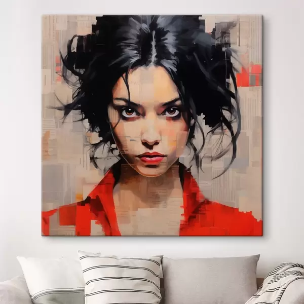 Paveikslas Moters portretas koliažo stiliumi laikraščio fone Nr s41481