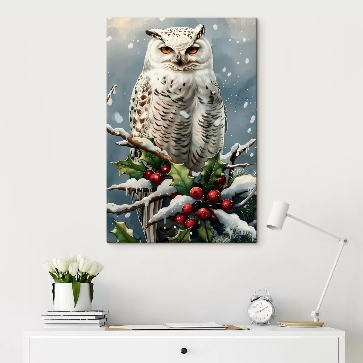 Paveikslas Pelėda ant žiemos šakos su uogomis ir lapais Nr s41482