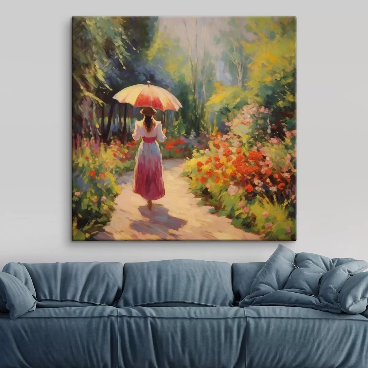 Paveikslas Moteris su skėčiu žydinčiame sode Nr s41495