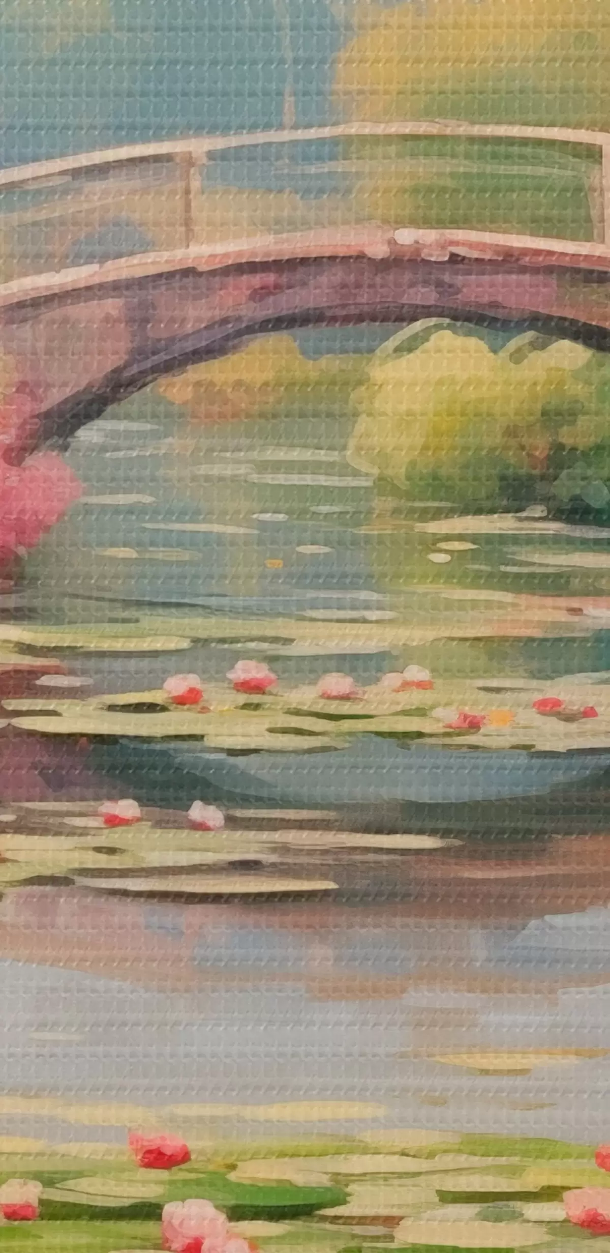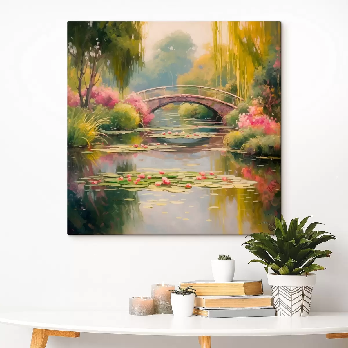 Paveikslas Sodo tiltas per ežerą su vandens lelijomis Nr s41503